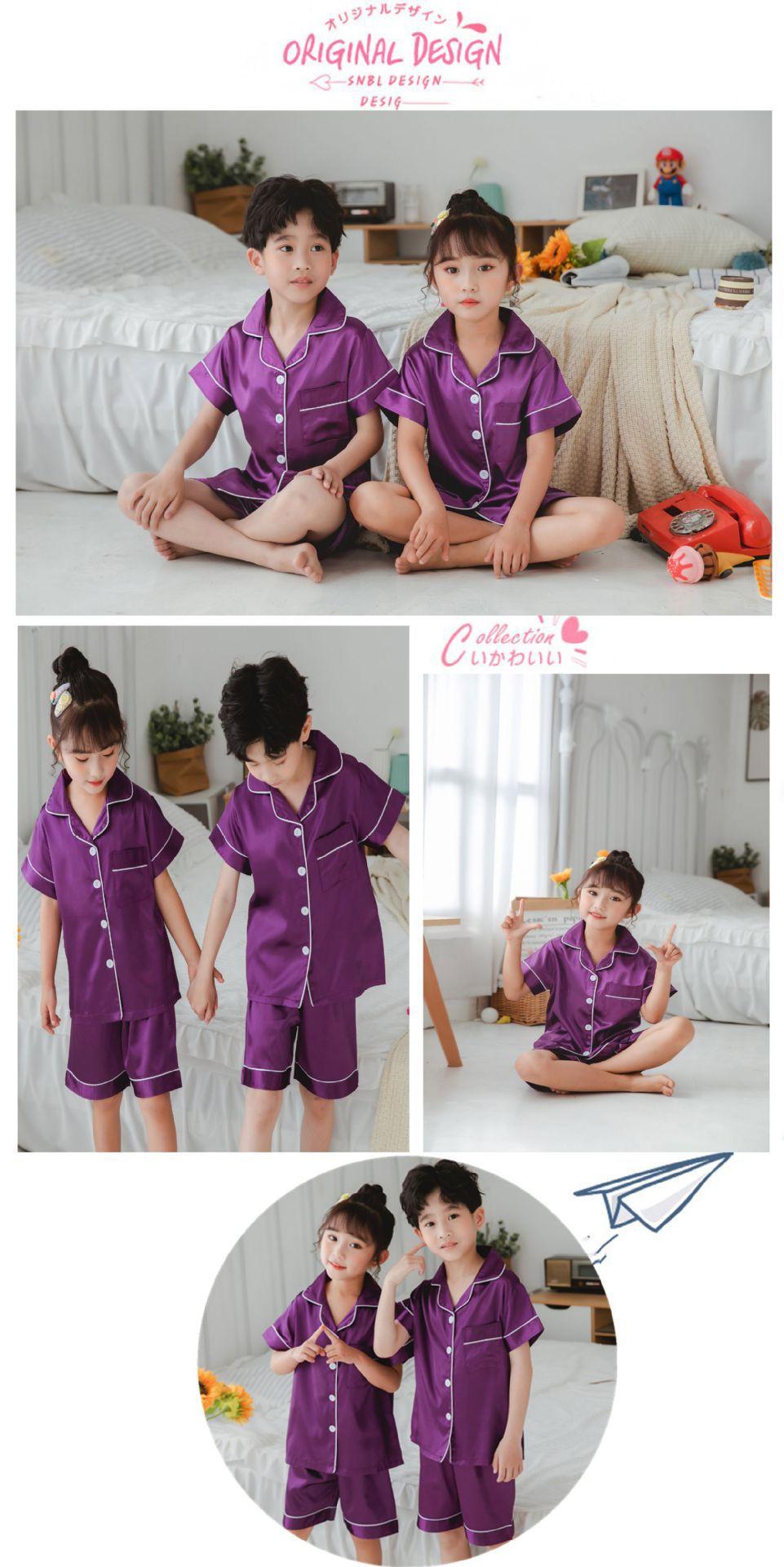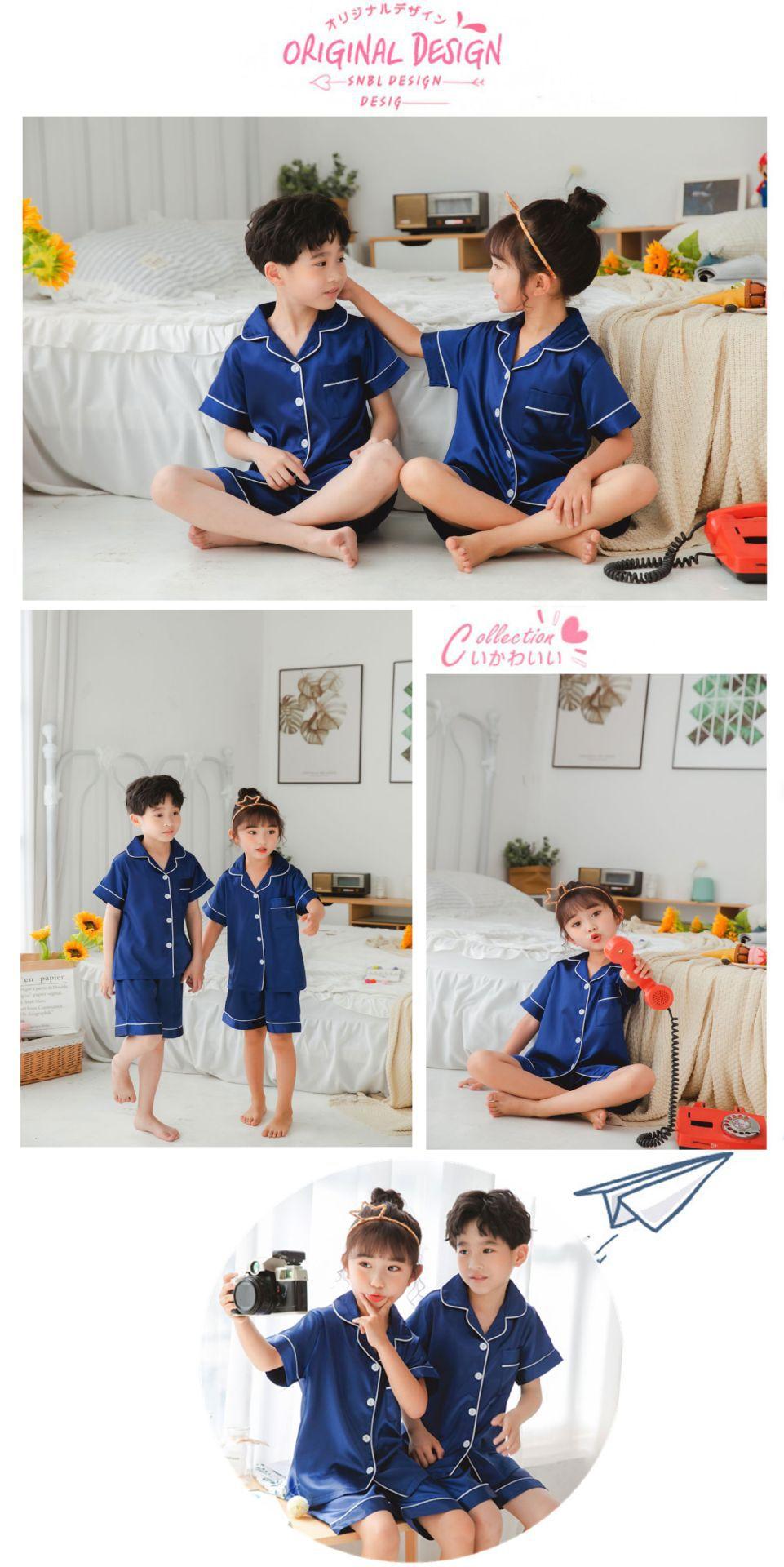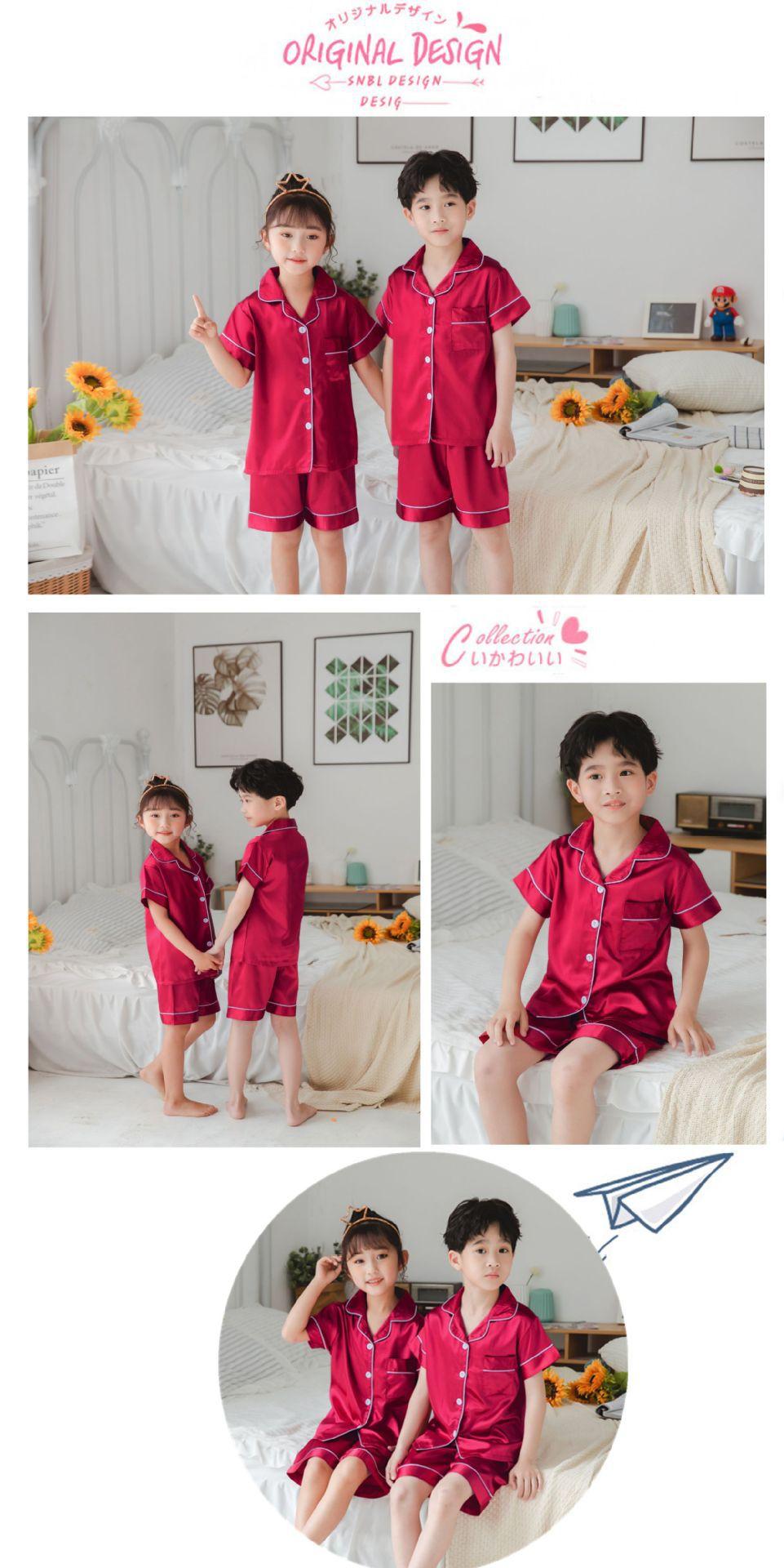 Pijama de Verano de Manga Corta de Seda Imitación para Niños y Niñas Bebé Verano Ropa para Niños Delgada Mediana y Grande Set de Ropa para el Hogar para Niños