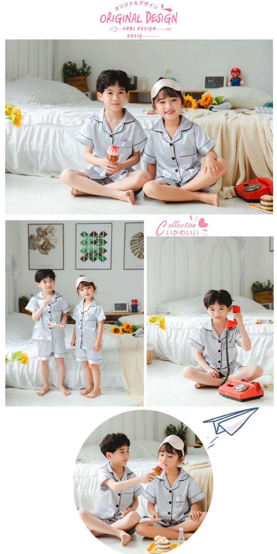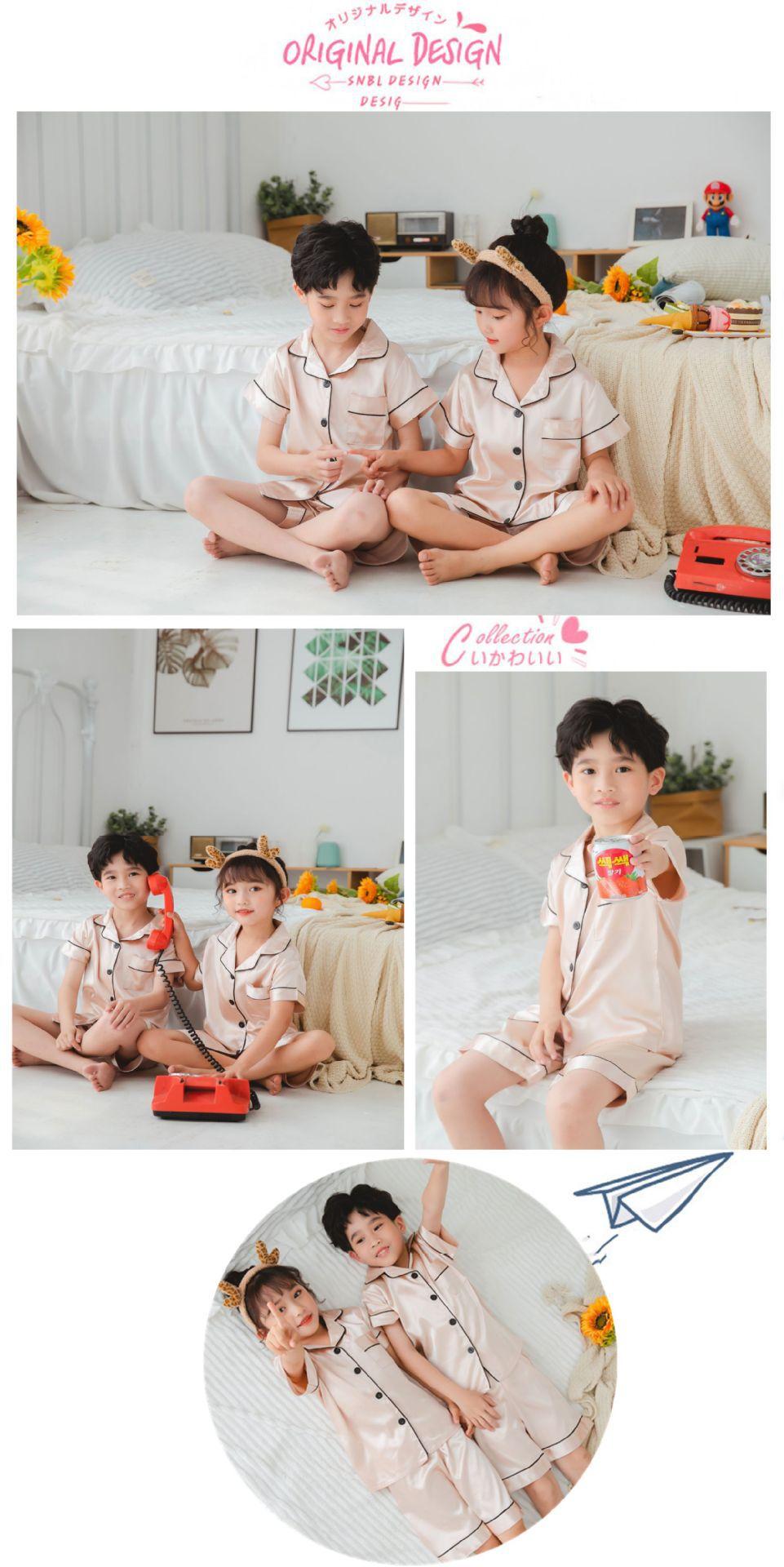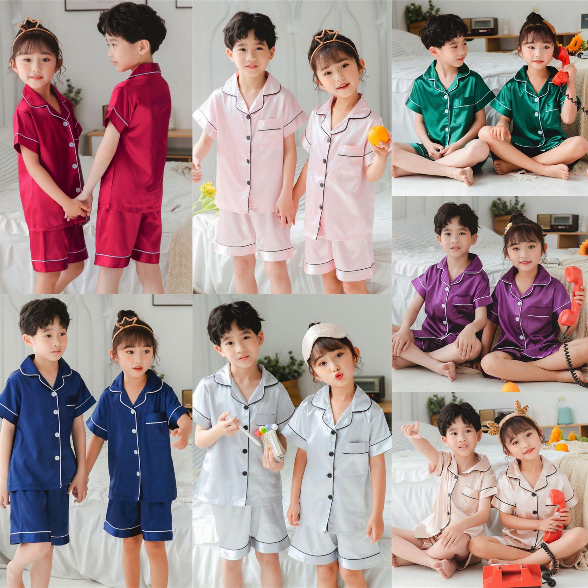 Pijama de Verano de Manga Corta de Seda Imitación para Niños y Niñas Bebé Verano Ropa para Niños Delgada Mediana y Grande Set de Ropa para el Hogar para Niños