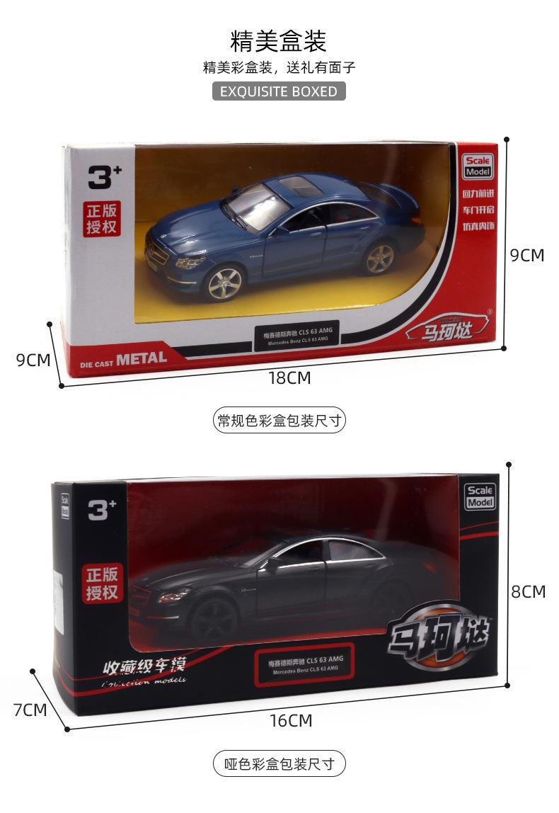 [En caja] Ma Ke 1:36 Mercedes-Benz CLS63 AMG Aleación Parte Trasera Fuerza Simulación Modelo de Coche Adornos para Pastel