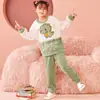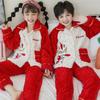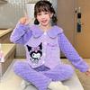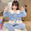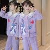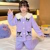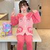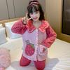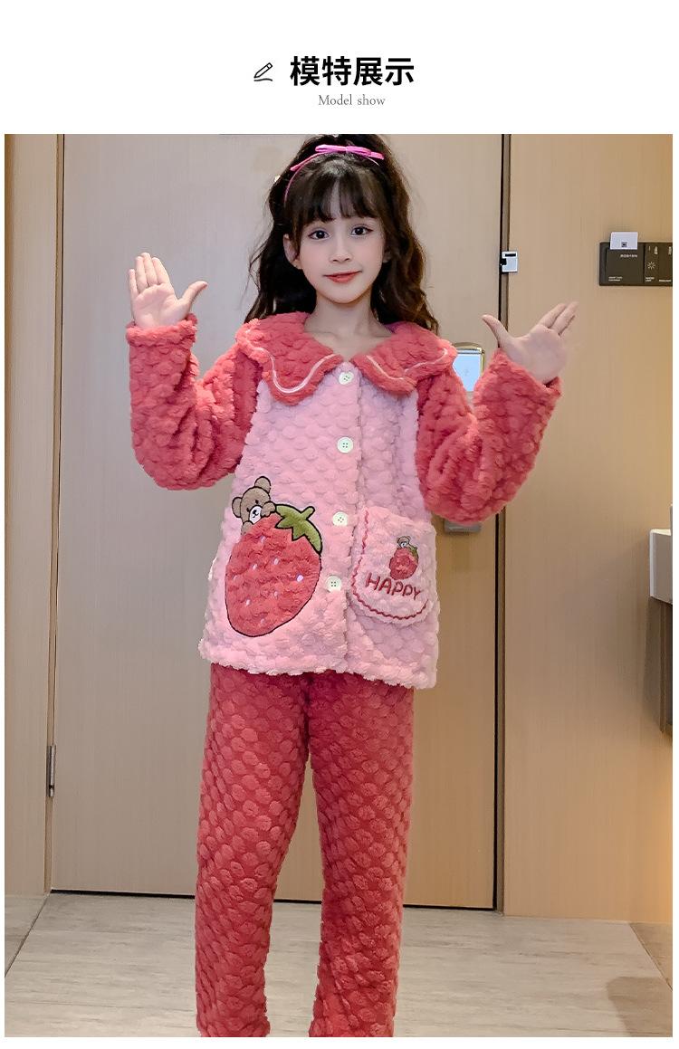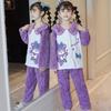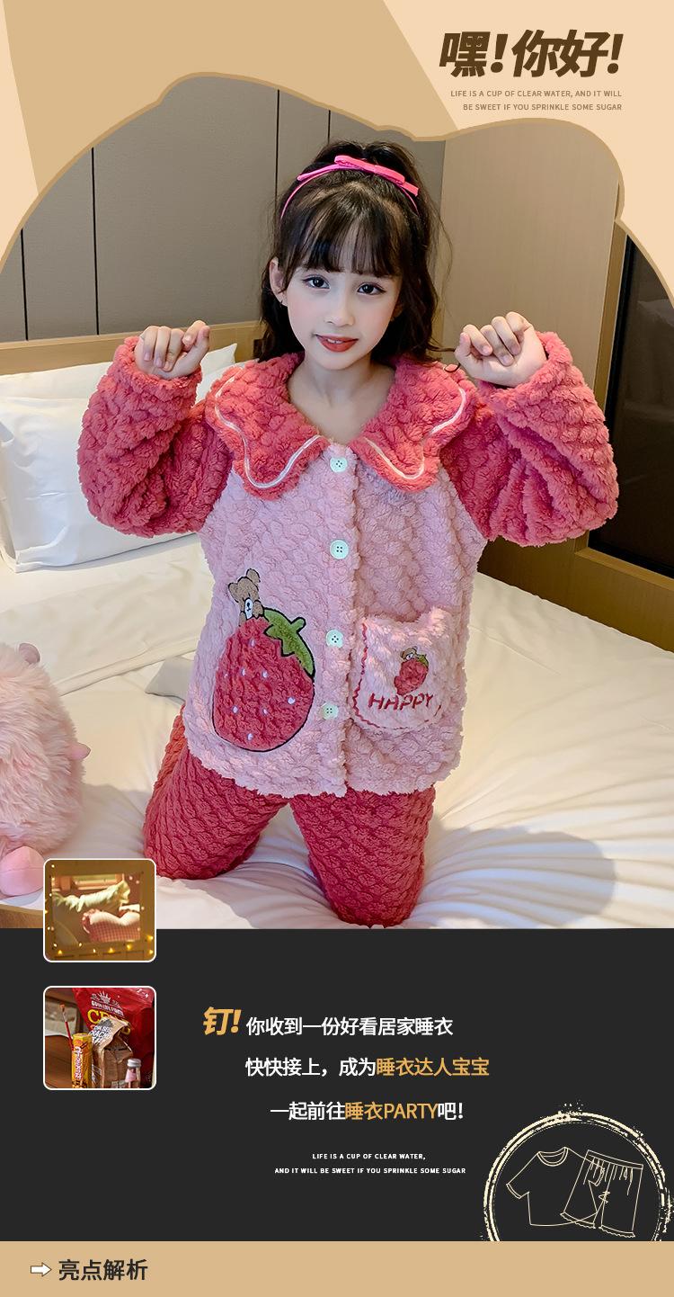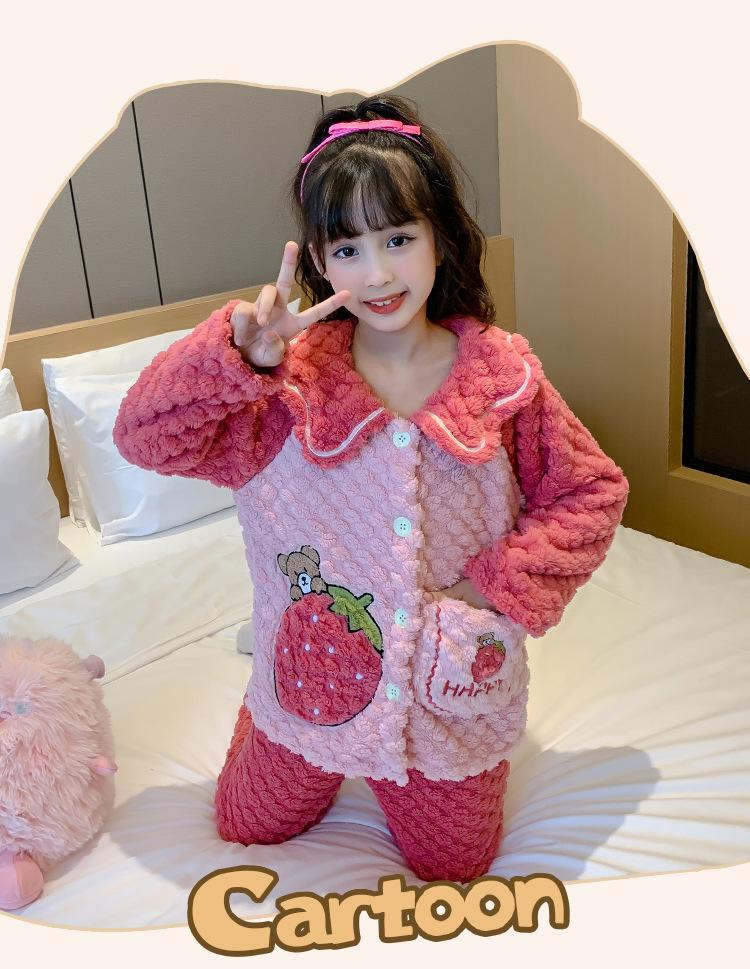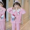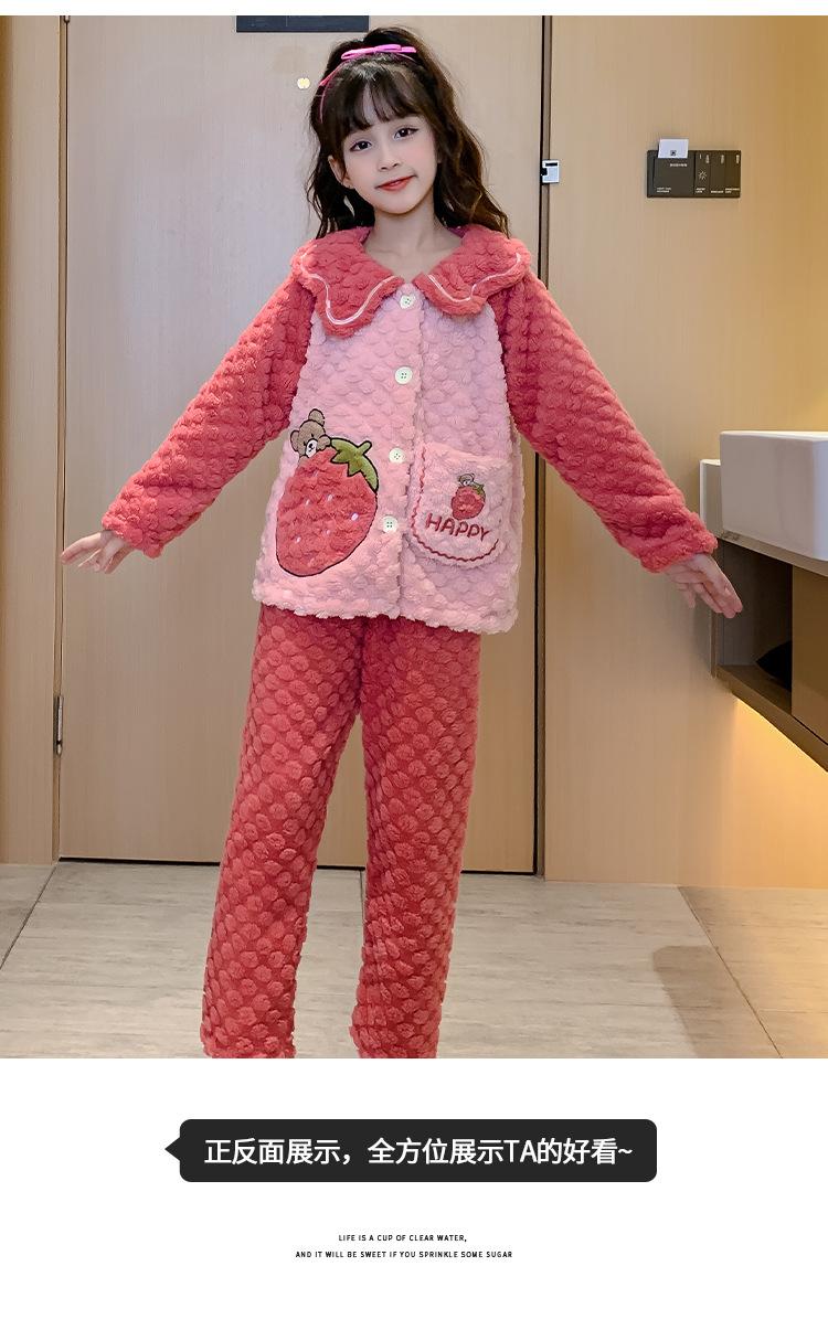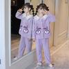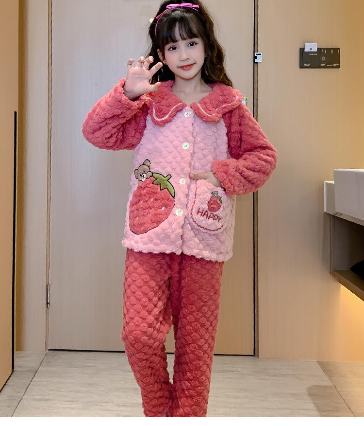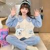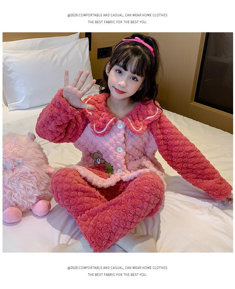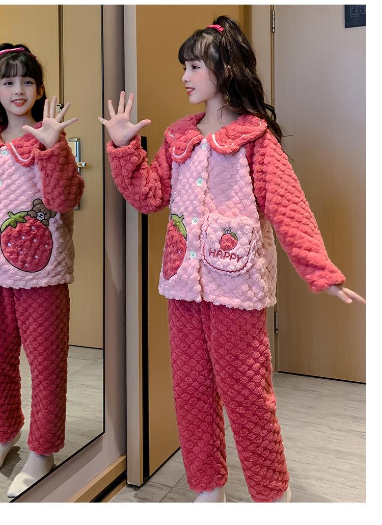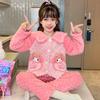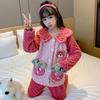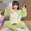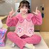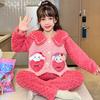 Pijamas para niñas, otoño/invierno, franela cálida, gruesa, forrada con vellón, dibujos animados, coral, tallas medianas y grandes, ropa de hogar para niños.