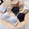 Venta de fábrica, ropa interior de encaje sexy de algodón de leche ligeramente gruesa con copa pequeña suave, tipo ajuste fruncido, sujetador sin aros no magnético