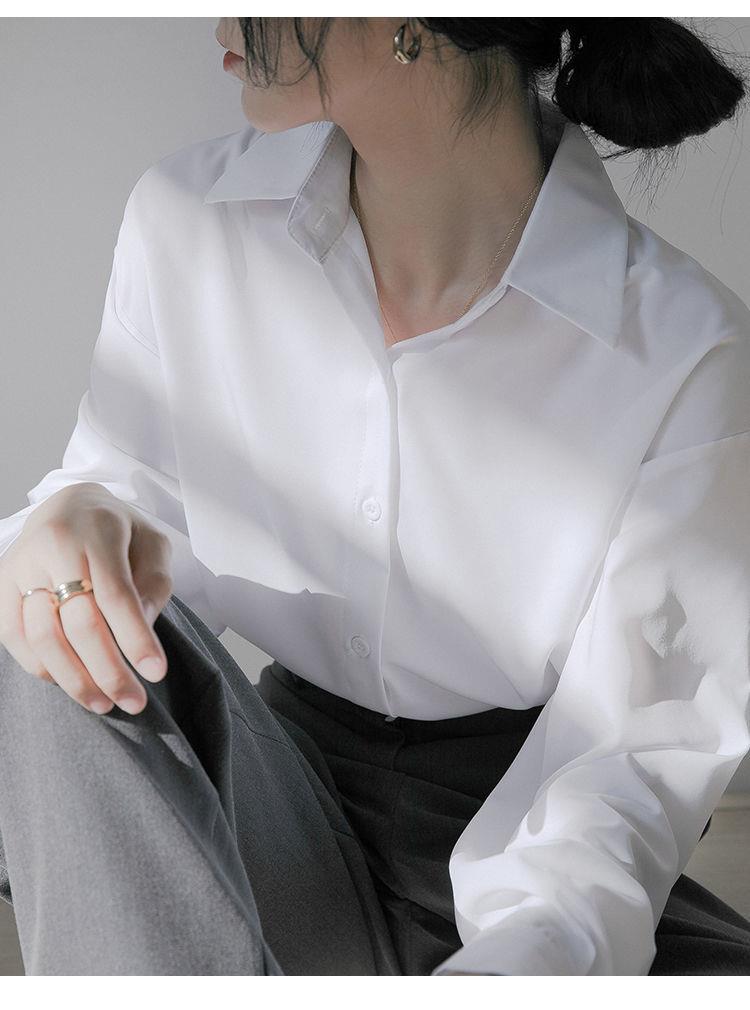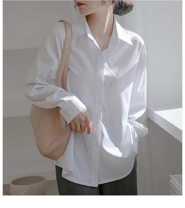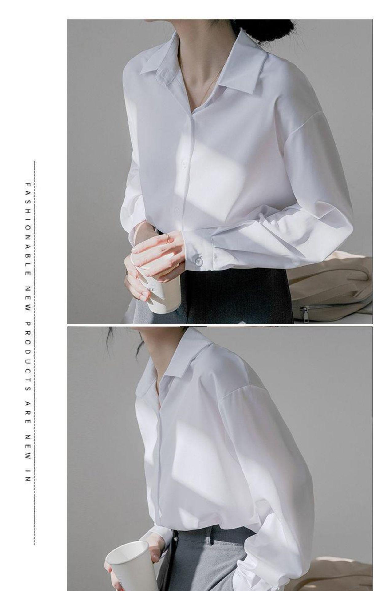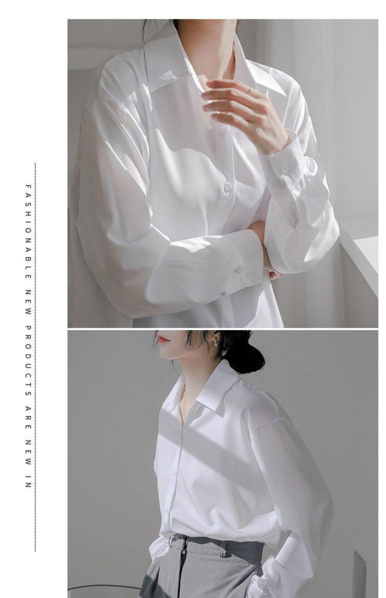 Camisa blanca holgada de estilo perezoso para mujer, primavera y otoño, nueva camisa de estilo francés de alta calidad, temperamento profesional, ligera y familiar, estilo Hong Kong