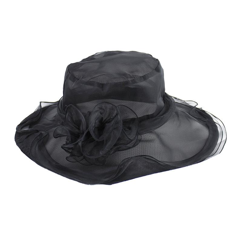 Vacaciones Junto al Mar Sombrero para el Sol Sombrero de Malla Transpirable Flor Exterior Protección Solar Elegante Sombrero de Ala de Organza Británico para Mujer