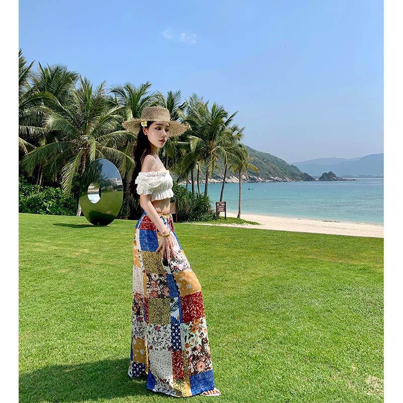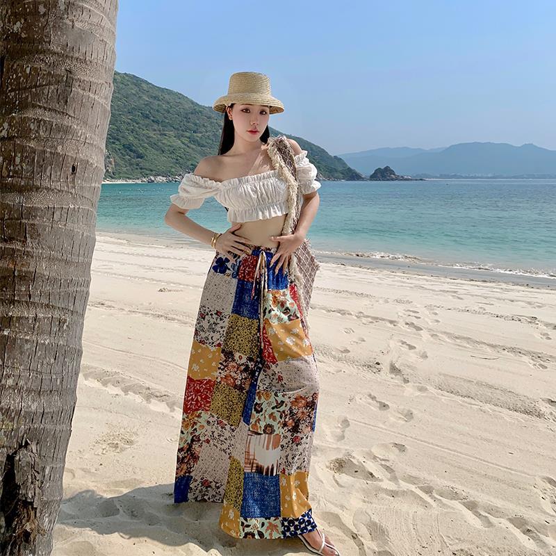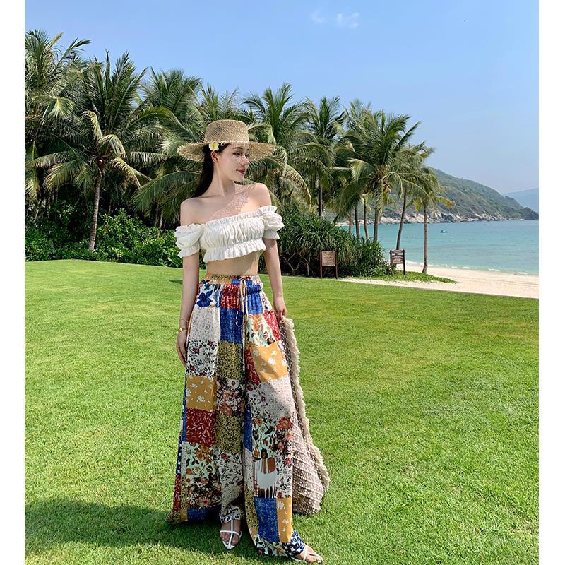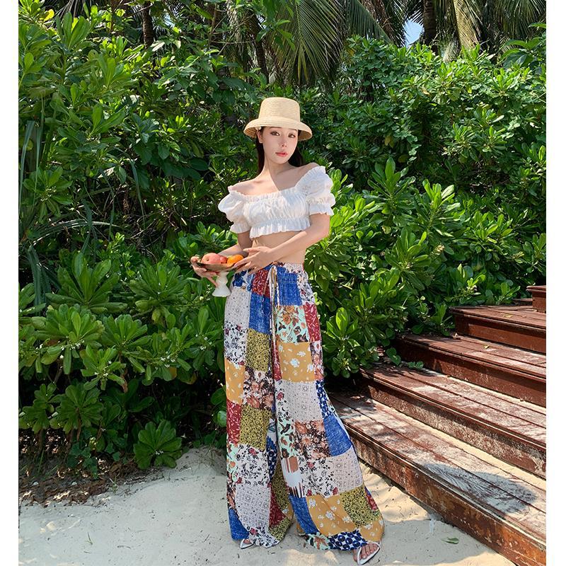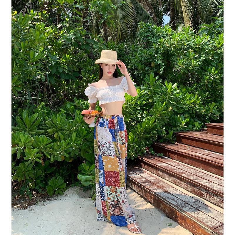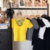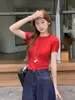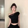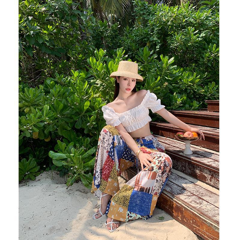 Blusa de verano de manga corta con bordado de jacquard de Super Fairy, blanca, sexy, con hombros descubiertos y encaje en la clavícula.
