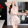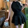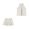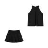 Traje de Verano Petite Falda de Pastel con Volantes Elegante Conjunto de Dos Piezas Top Chaleco Halter sin Mangas para Mujer
