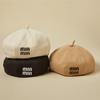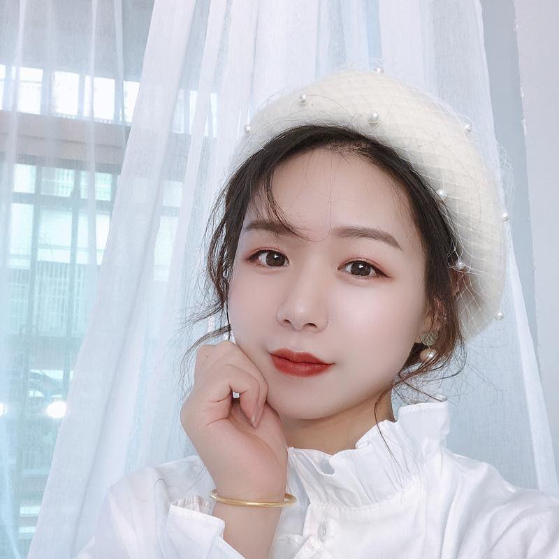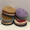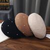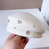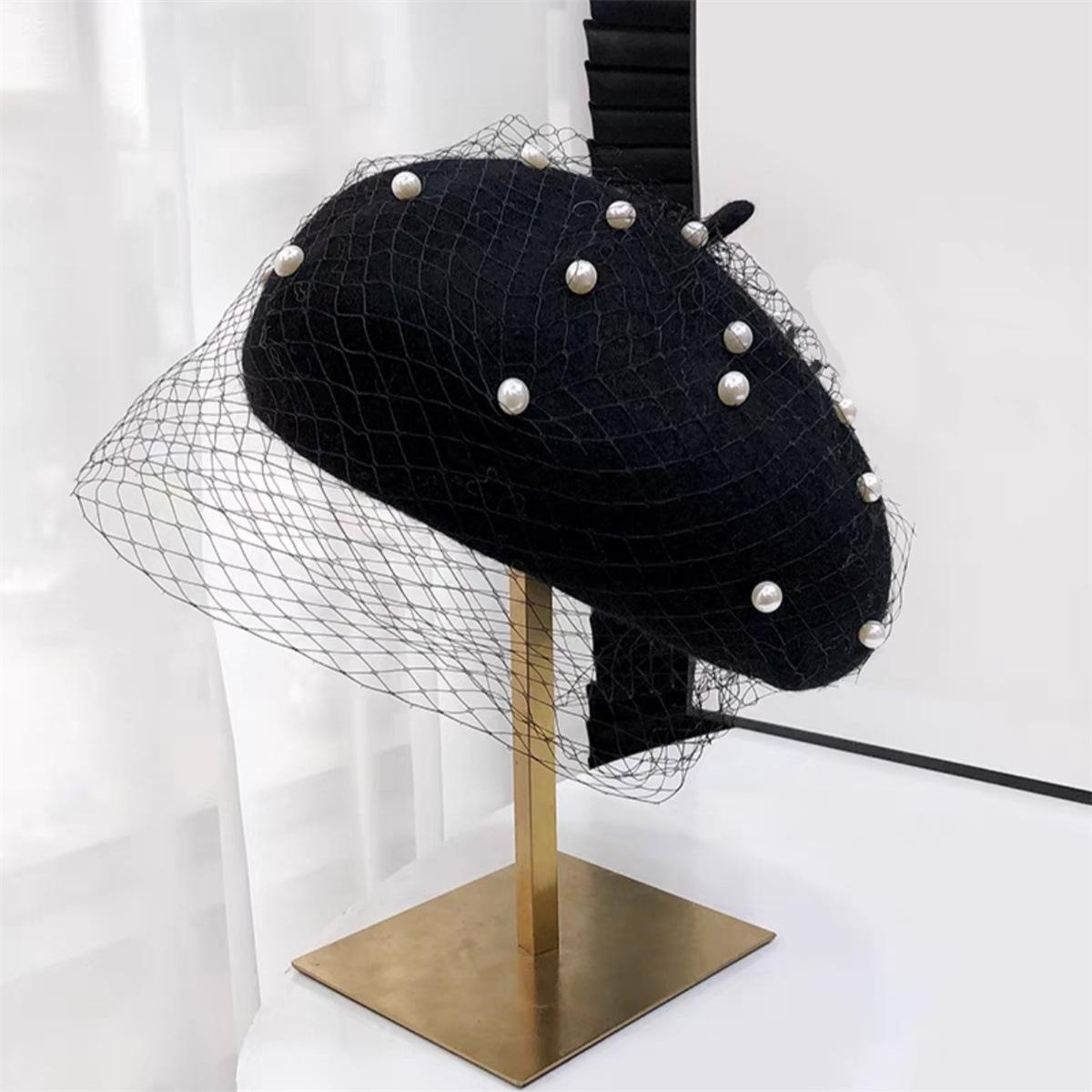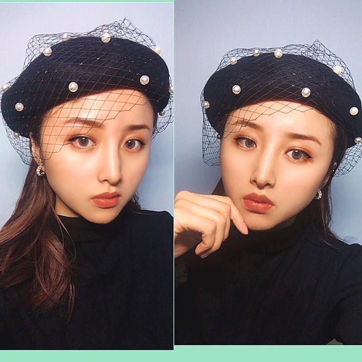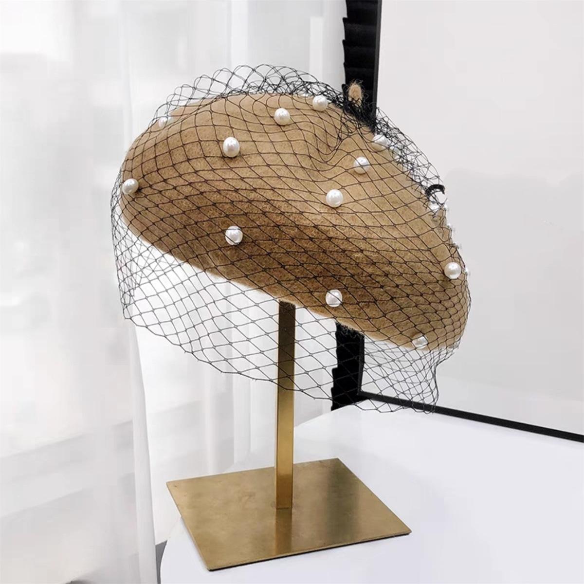 Sombrero de malla de perla estilo coreano para otoño e invierno, boina de pintor de lana estilo británico retro japonés para mujer, sombrero de calabaza de color sólido