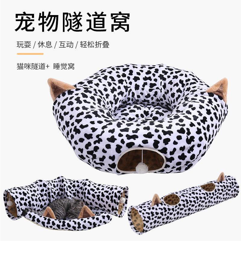 Nuevo Transfronterizo Lunares de Vaca, Varios Túneles para Gatos Plegables, Cama Túnel para Gatos Resistente a los Arañazos, Juguetes para Gatos Autoestimulantes