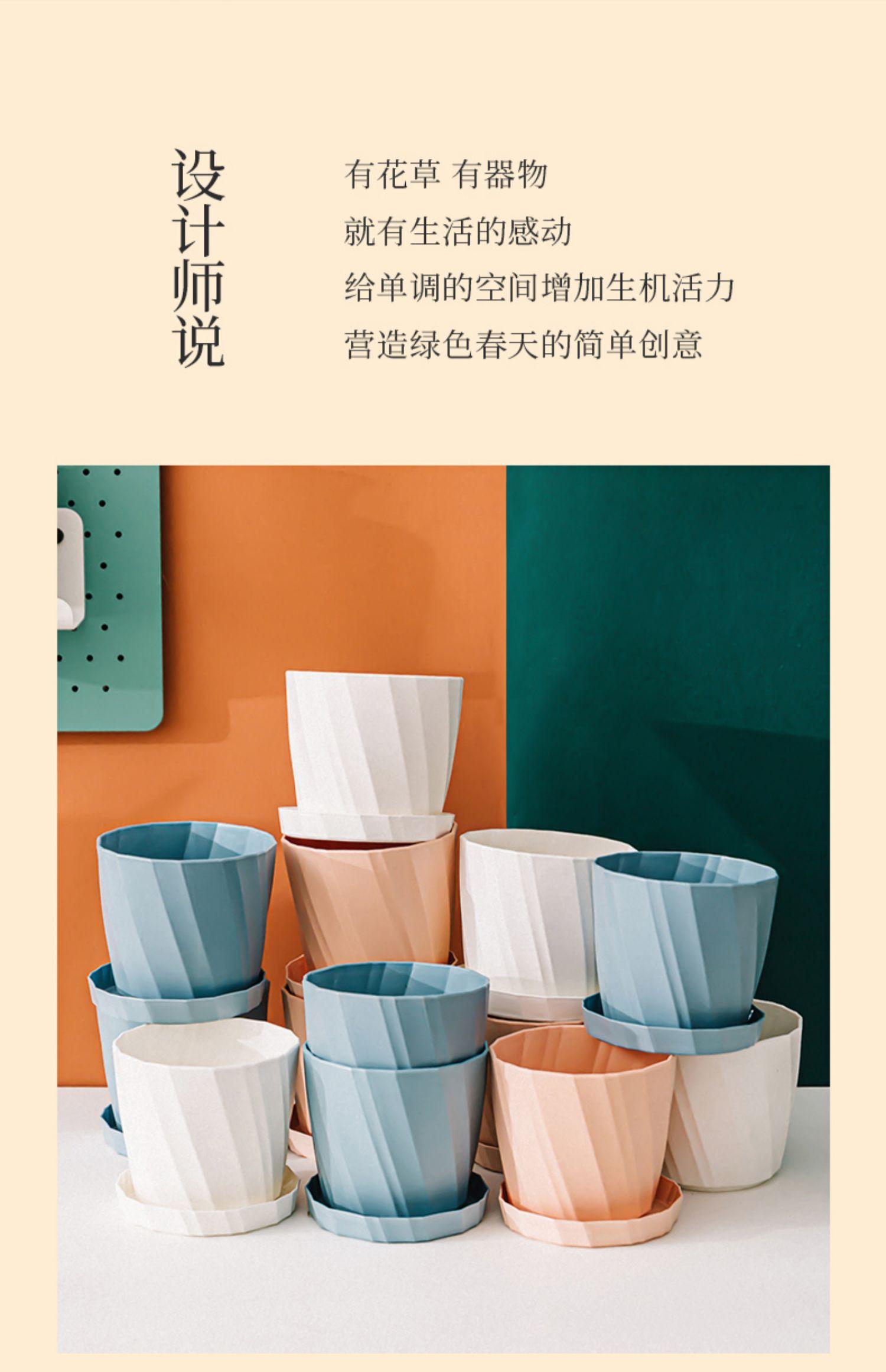 Maceta de plástico para el hogar, ligera, de lujo, de cerámica, de resina, blanca, pequeña, directa de fábrica, con bandeja.