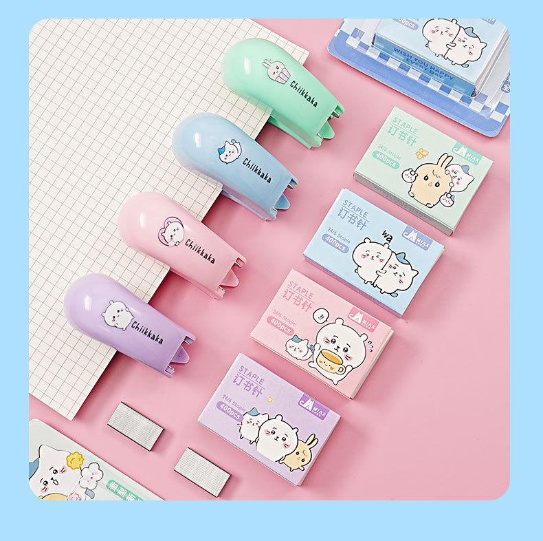 Purple stapler set, Pink stapler set, Blue stapler set, Green stapler set