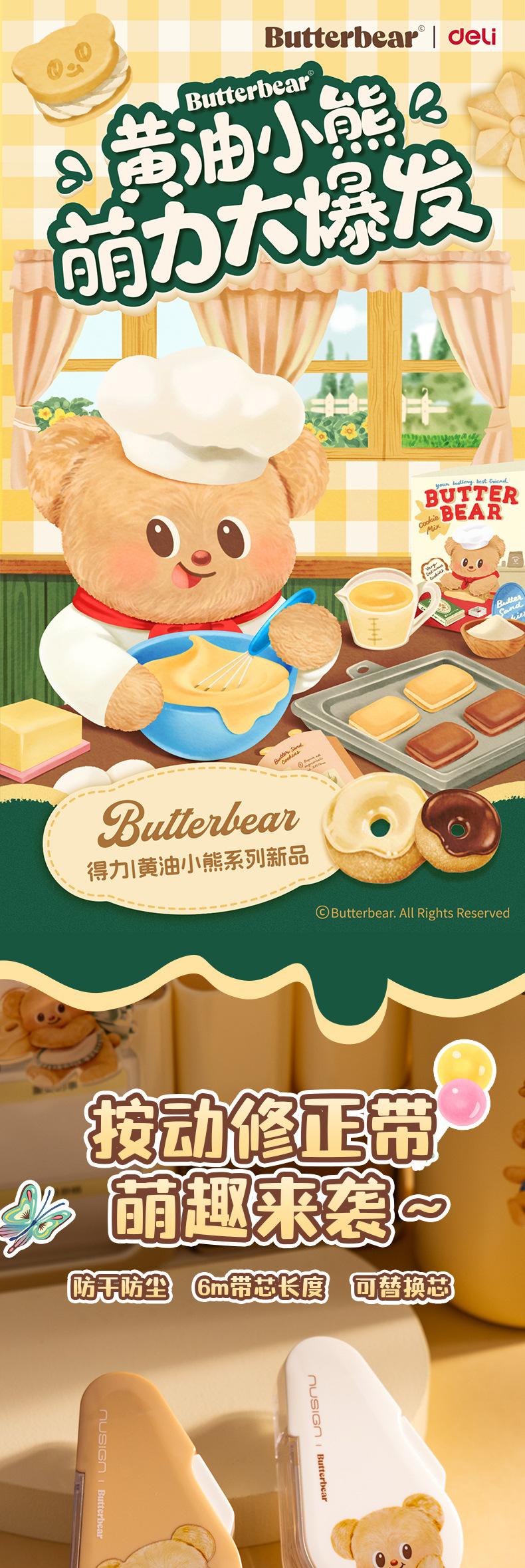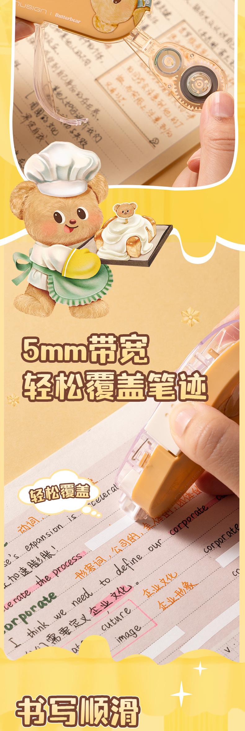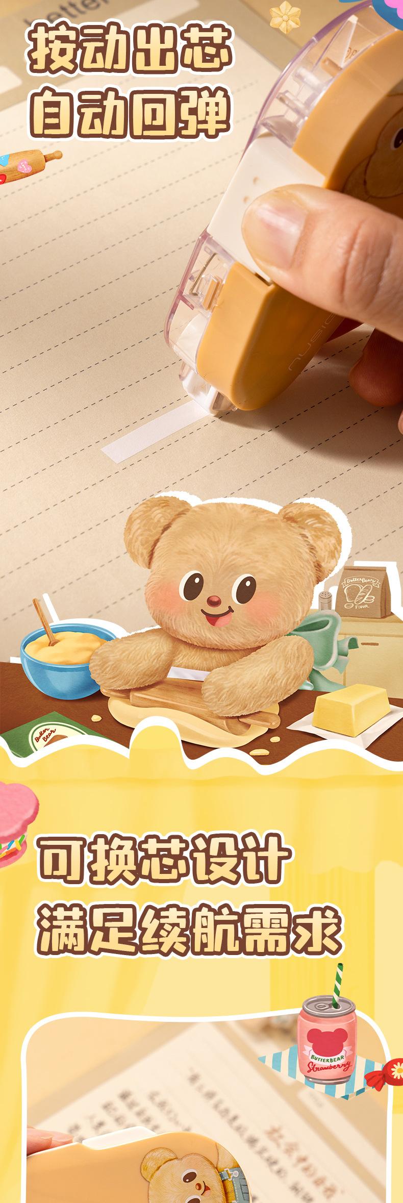 Deli NS161-B Cinta Correctora Butter Bear Newsey Cinta Correctora de Puerta Sellada a Presión 6m12m Cinta Correctora para Estudiantes