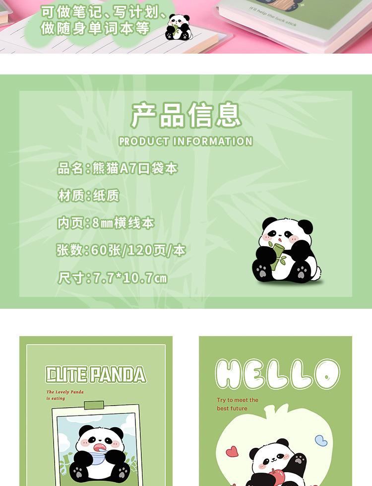 Lindo Cuaderno de Bolsillo A7 de Panda Cuaderno de Dibujos Animados para Estudiantes Papelería para Niños Premio de Vacaciones Mini Cuaderno Rayado