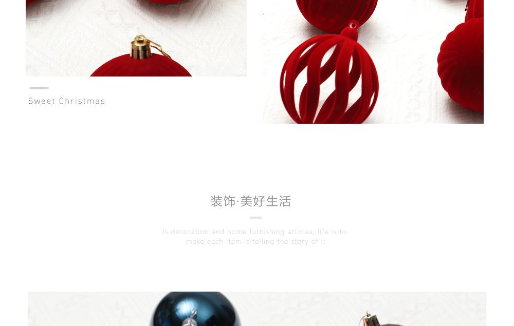 Bola Decorativa Navideña Transfronteriza Bola de Plástico Pintada con Flocado Bola Colgante para Árbol de Navidad Adornos Colgantes Suministros para Arreglo de Escena Decoraciones