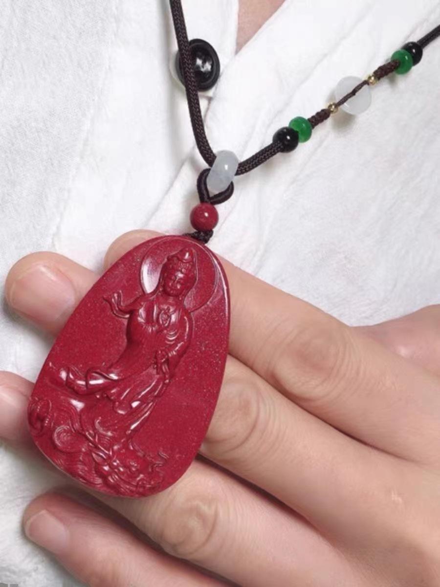 Colgante de Cinabrio Arena Oro Púrpura Alto Contenido Guanyin Montando un Dragón Colgante Guanyin Amuleto de Oración Tendencia Nacional