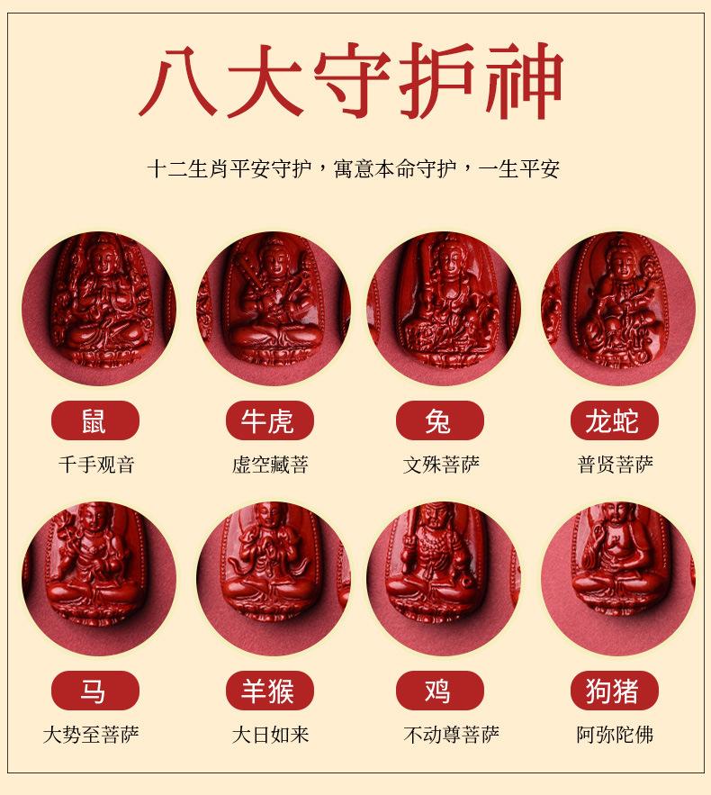 Joyería de Cinabrio Arena Dorada Púrpura Buda Natal Signos del Zodíaco Doce Puxian Bodhisattva Amitabha Colgante Collar Colgante