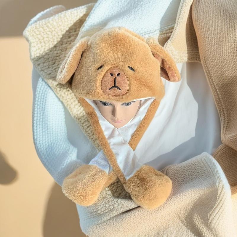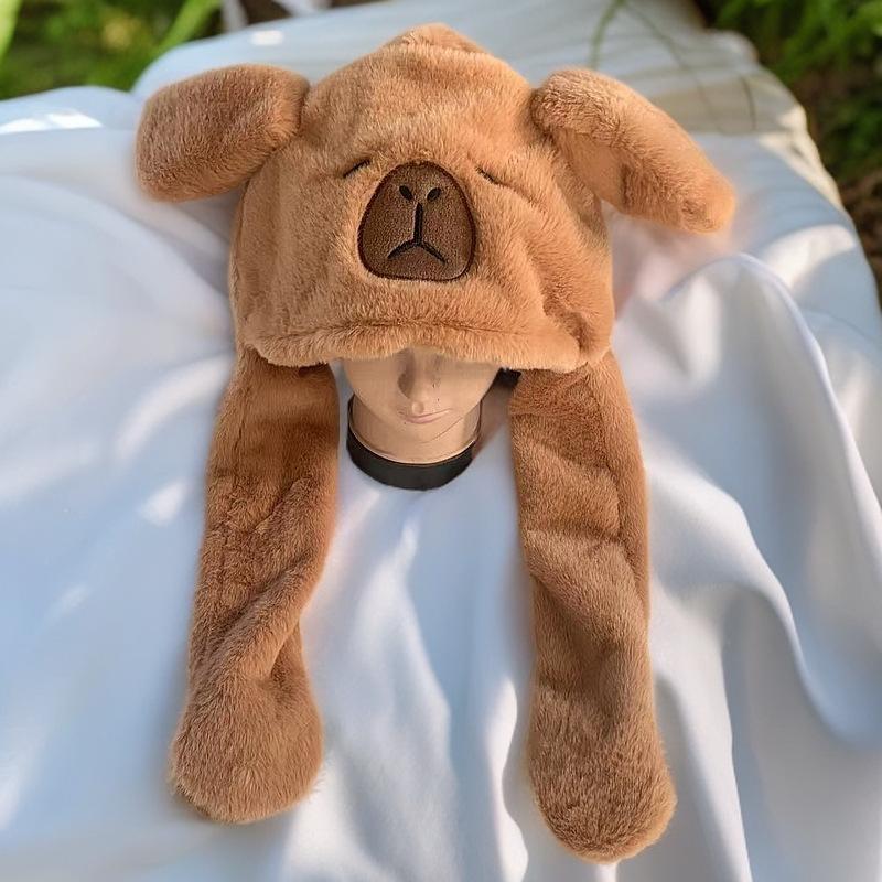 Sombrero con Orejas Móviles Sombrero de Capibara Sombrero Cálido con Airbag para Niños Regalo Creativo Dibujos Animados Cálido Invierno Navidad