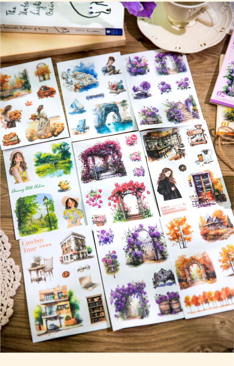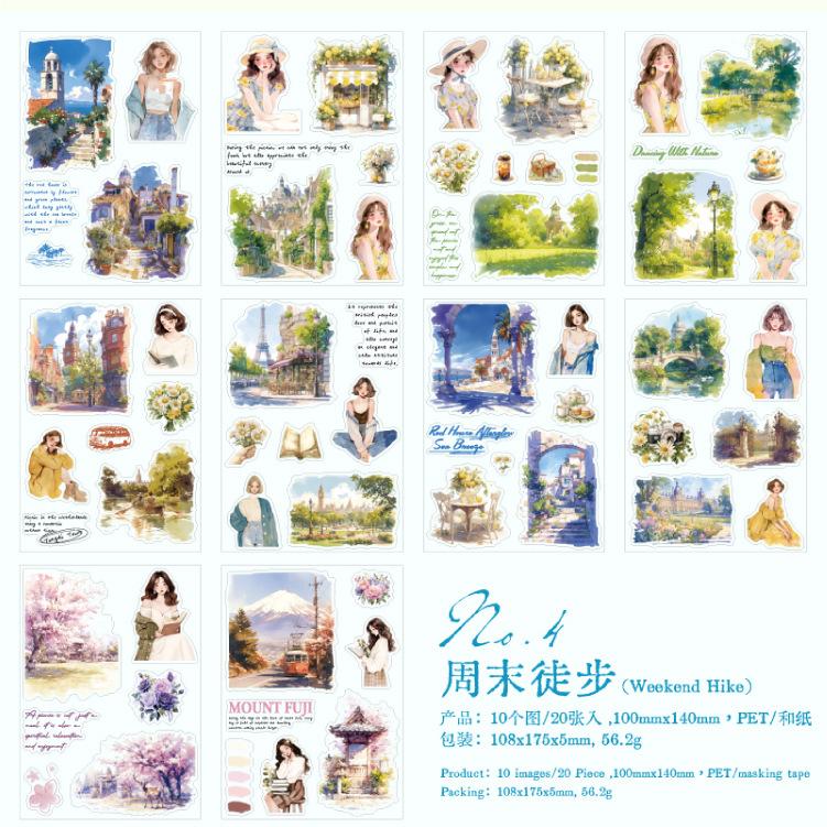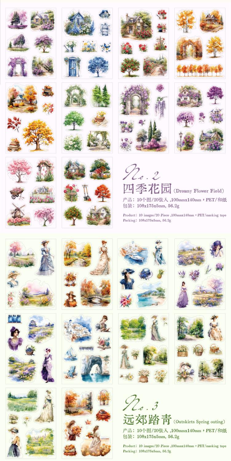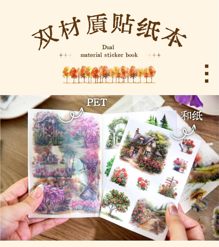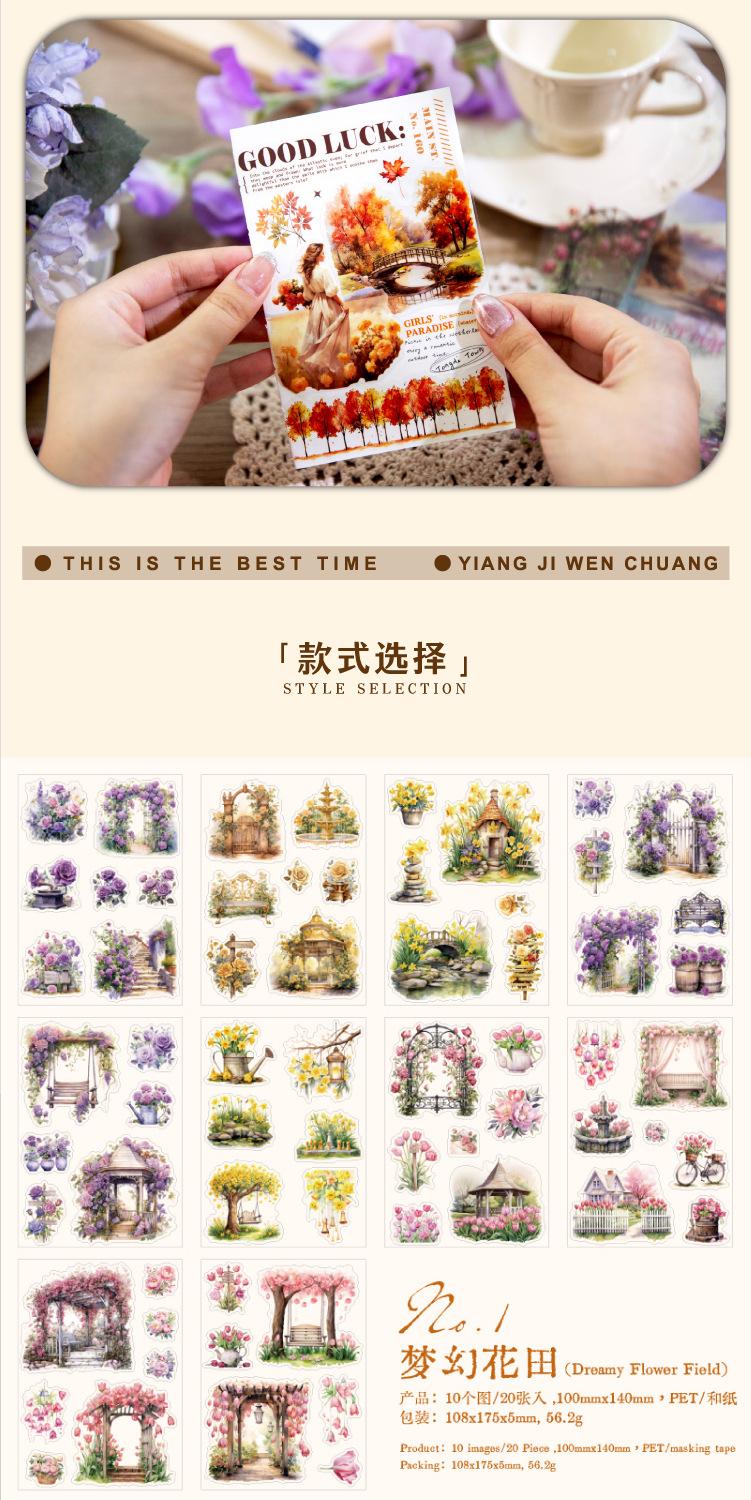 Libro de pegatinas de doble material de Yan Ji, serie de campos de flores de jardín, pegatinas de decoración de cuentas de mano con tema de vida seleccionado 20 en 5