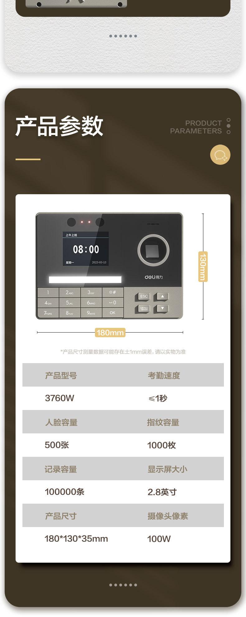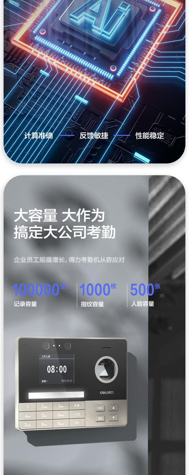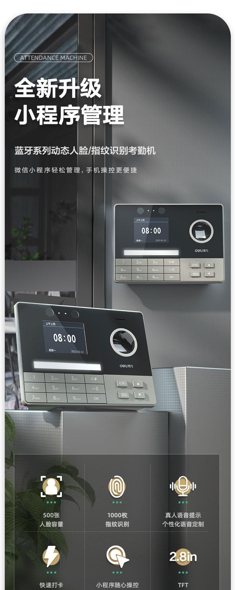 Máquina de asistencia para delicatessen de 3760 W con reconocimiento facial dinámico y Bluetooth, registro con tarjeta PIN y huella dactilar.
