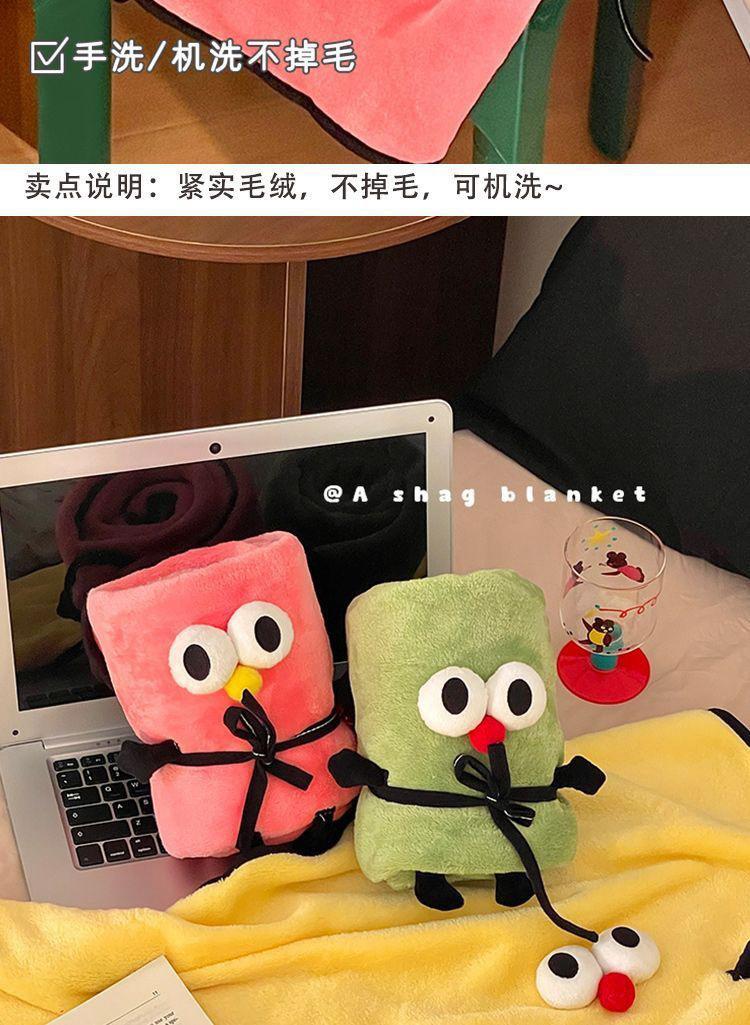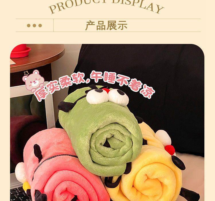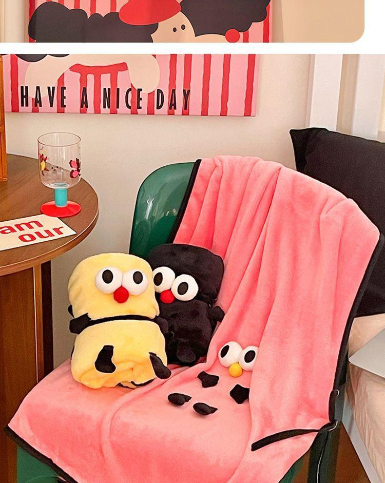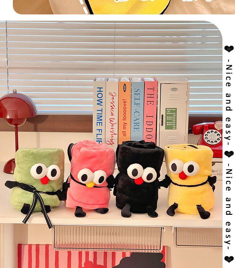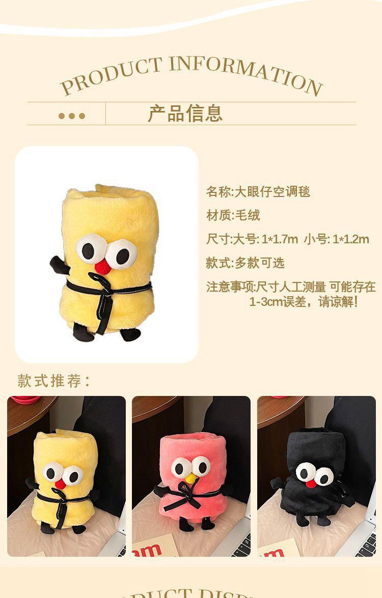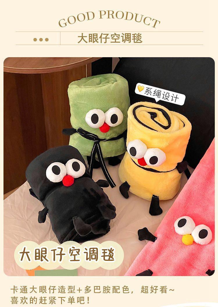 Linda cobija de felpa de ojos grandes de dibujos animados cobija de verano cobija para aire acondicionado cobija creativa para guardar muñecos cobija enrollable venta al por mayor de fábrica