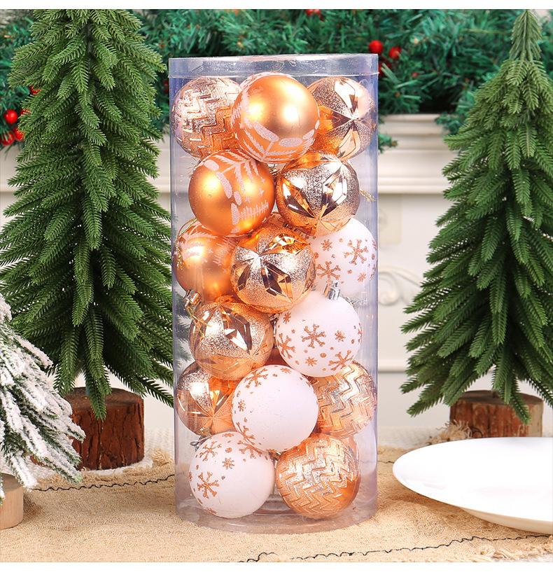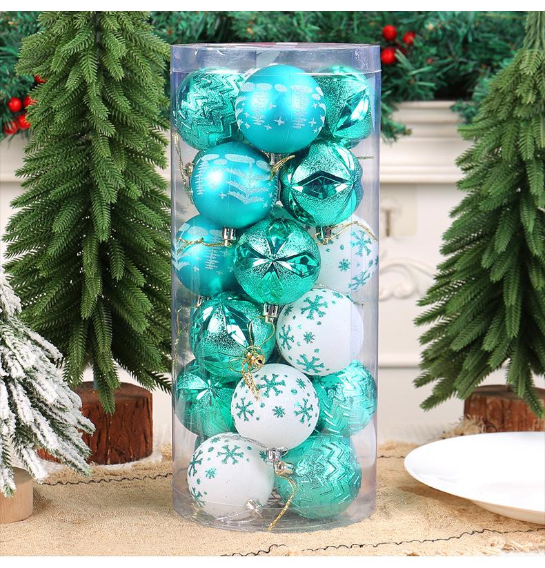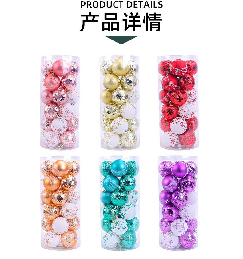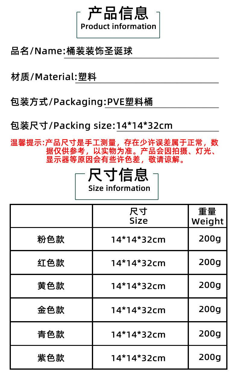 Bola navideña transfronteriza pintada a mano con forma de bola de plástico galvanizado, colgante de bola de árbol de Navidad con forma de barril.