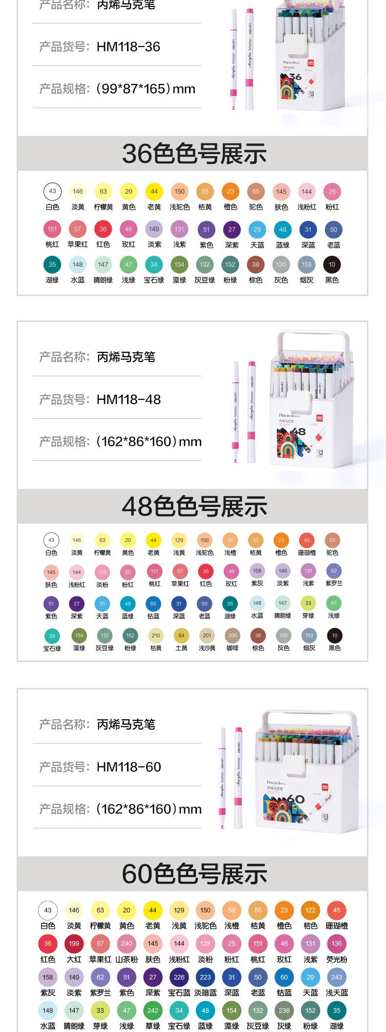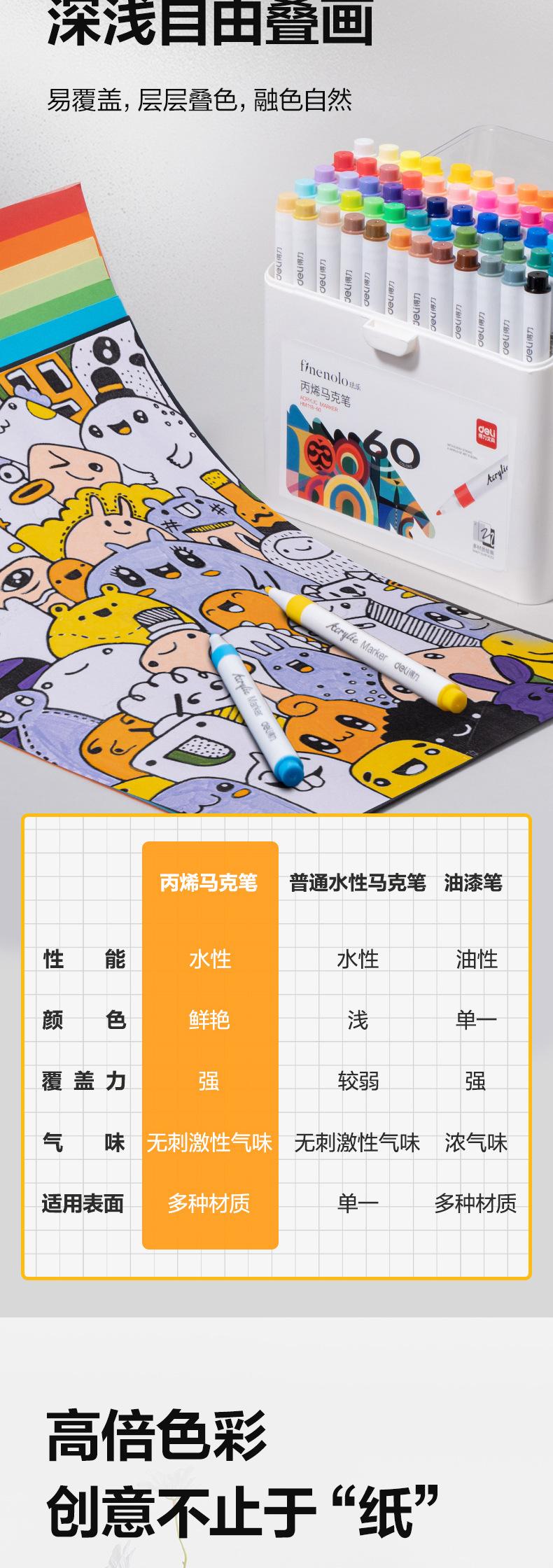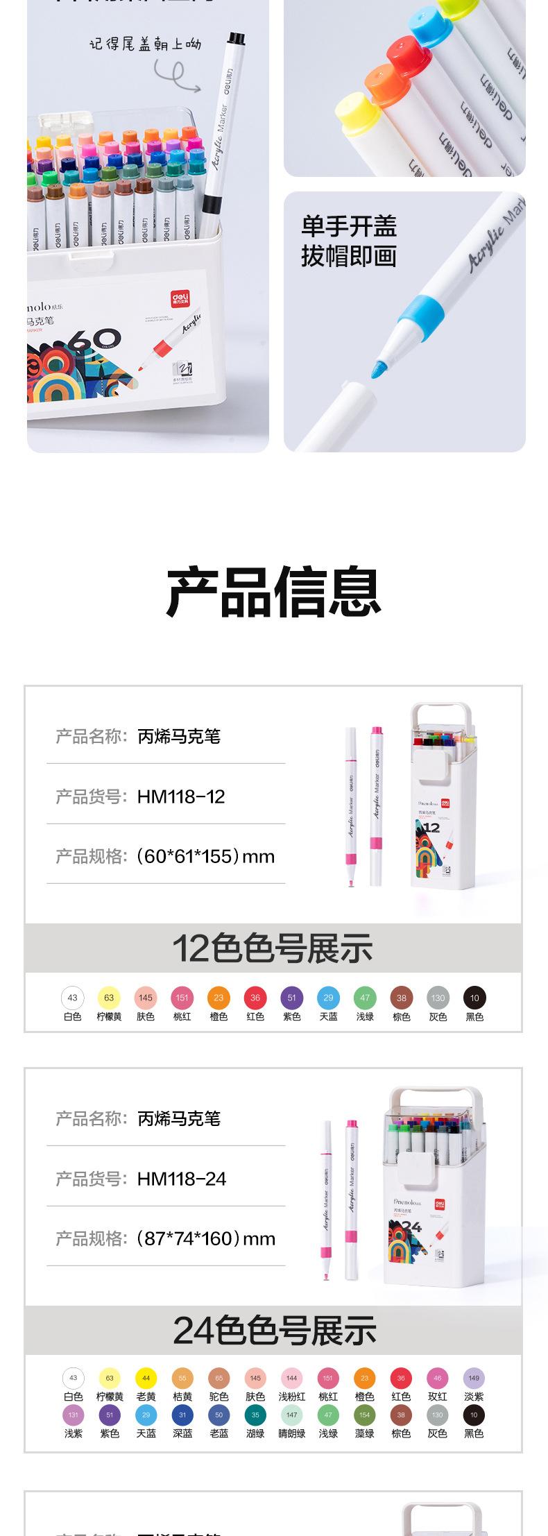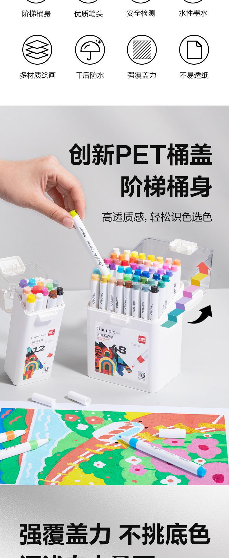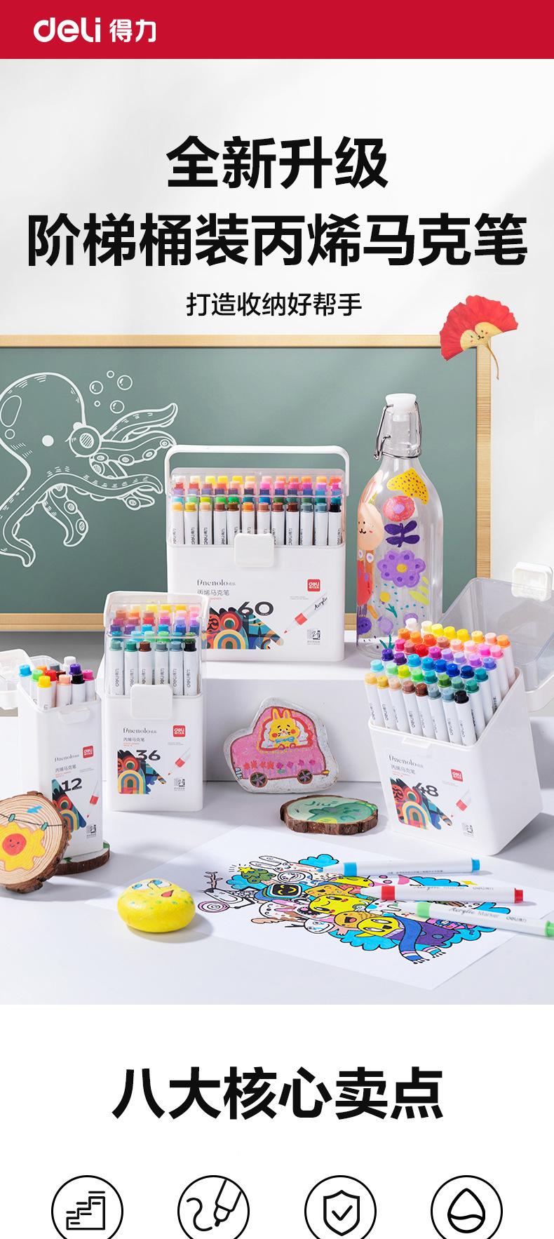 Plumón acrílico Deli HM118 cuerpo redondo pluma de color a base de agua color apilable opaco resistente al agua DIY pintado a mano para niños