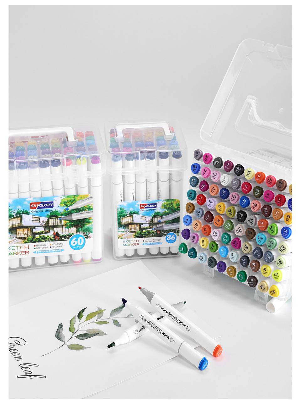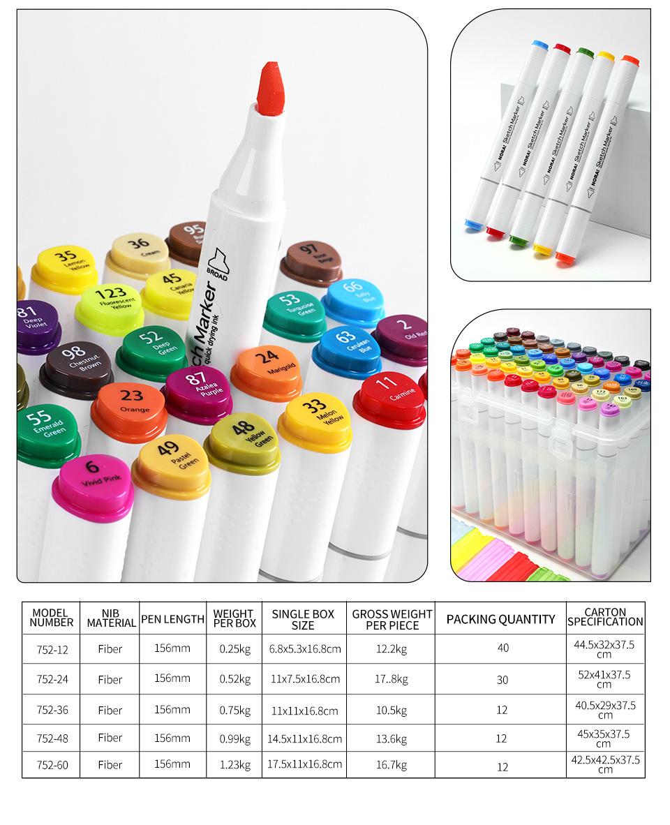 Tianhui Set de Marcadores de Doble Punta Transfronterizo al por Mayor de Gran Capacidad Punta de Cuchilla Varilla Redonda Pluma Acuarela Estudiante Apilable Pluma para Pintar a Color
