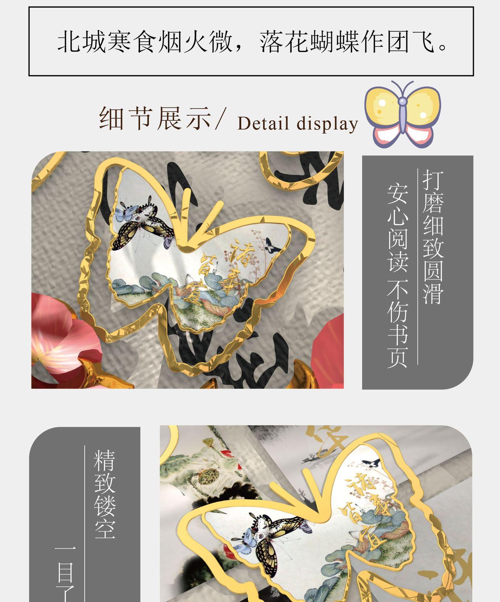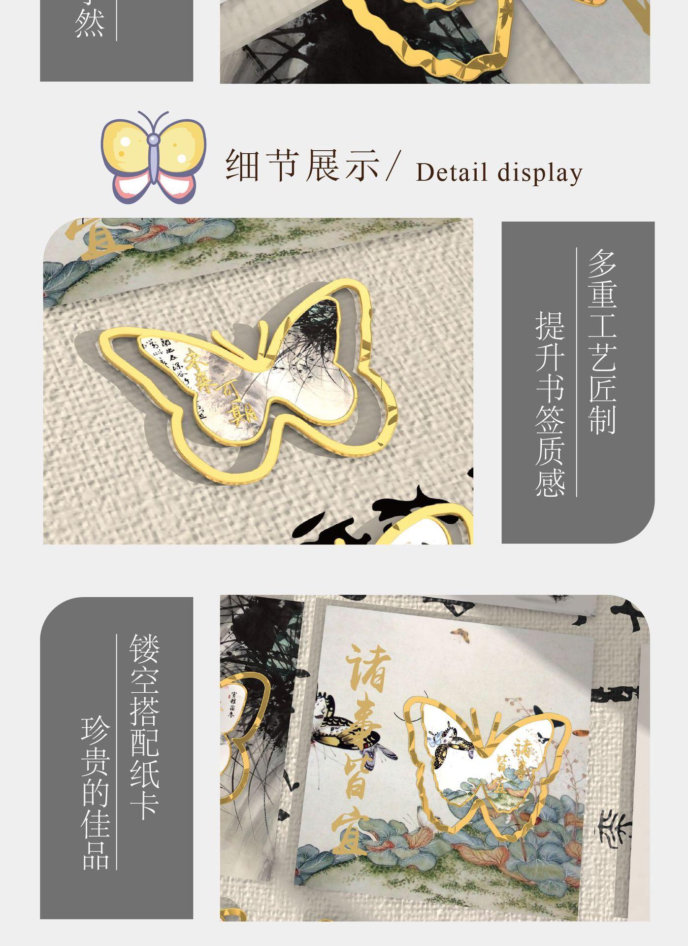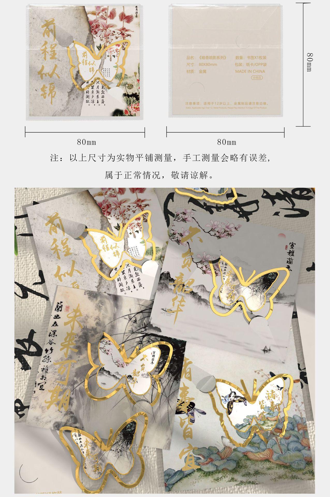 Marcapáginas de metal con forma de mariposa de estilo chino de la serie Mengdie, regalo creativo para estudiantes, marcapáginas creativo, clip de página de lectura inspirador