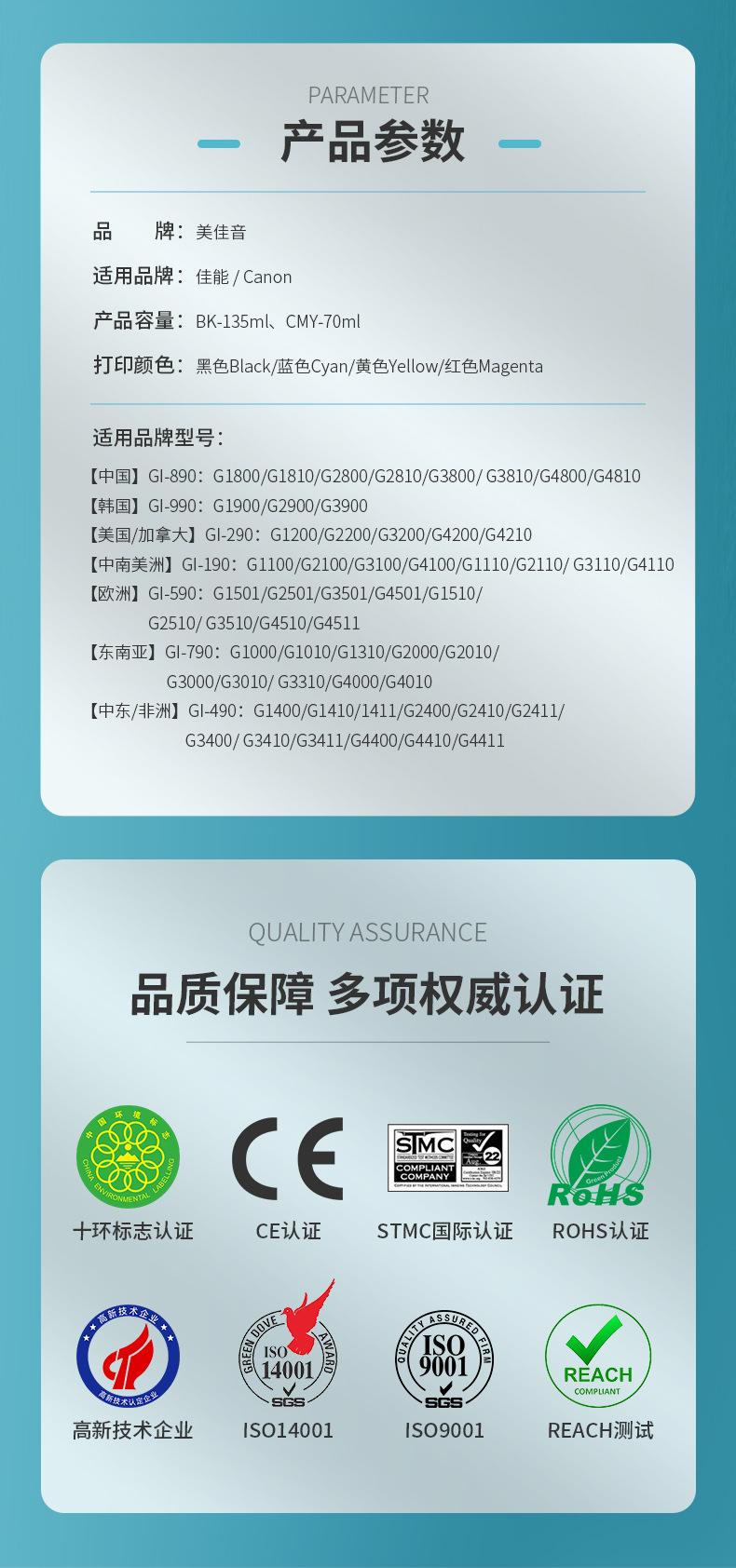 La tinta GI-890 es adecuada para tinta de impresora compatible Canon G1800 G1810 G2800 G3800
