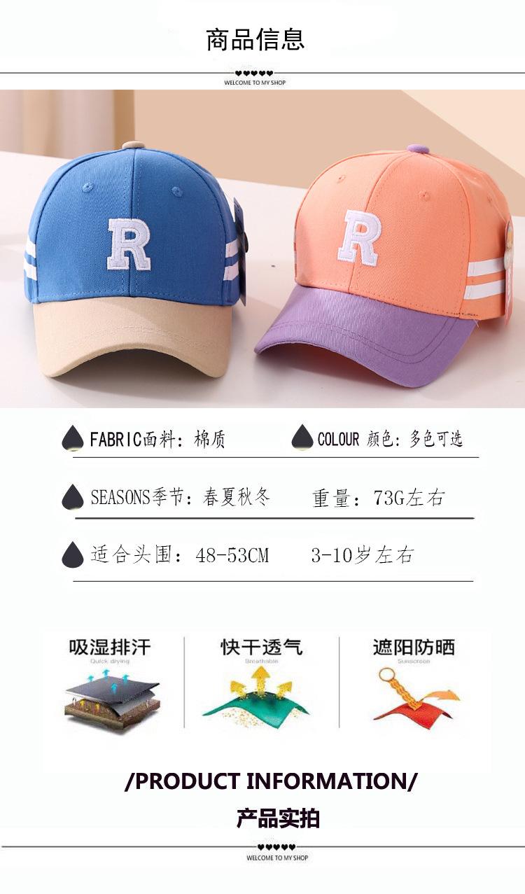 Gorra de béisbol europea y americana al por mayor 2023 primavera y verano nuevo sombrero para niños bordado R Street protección solar gorra con visera ins