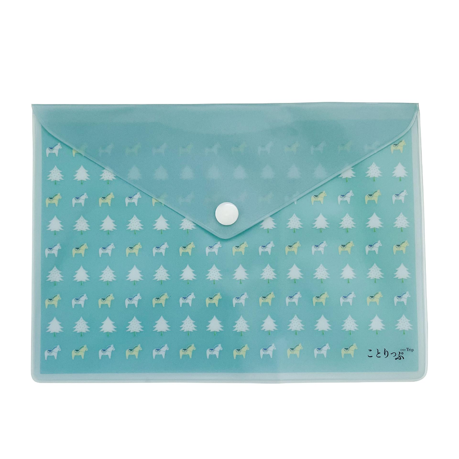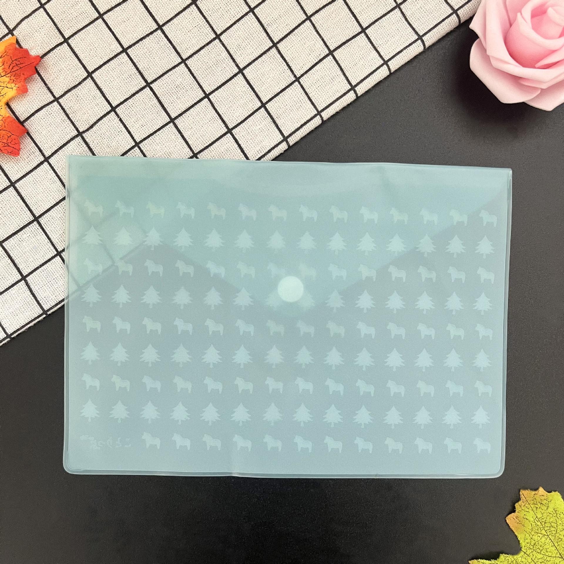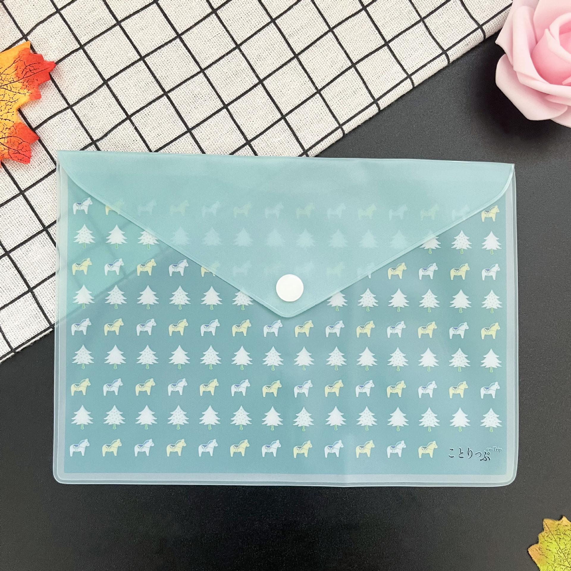 Bolsa de archivo de PVC con botón a presión, bolsa de papelería verde arena, impermeable, linda bolsa de almacenamiento de papelería de dibujos animados