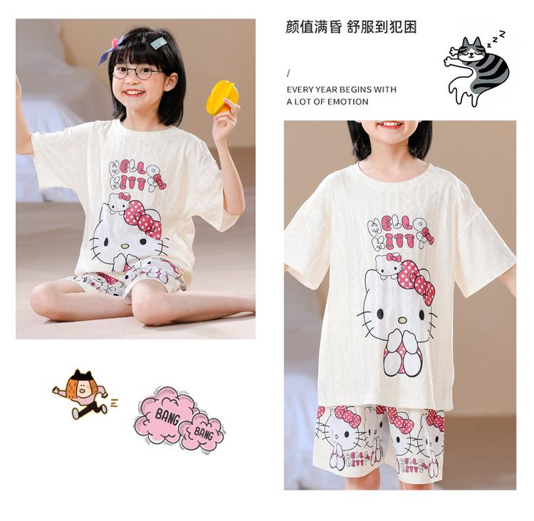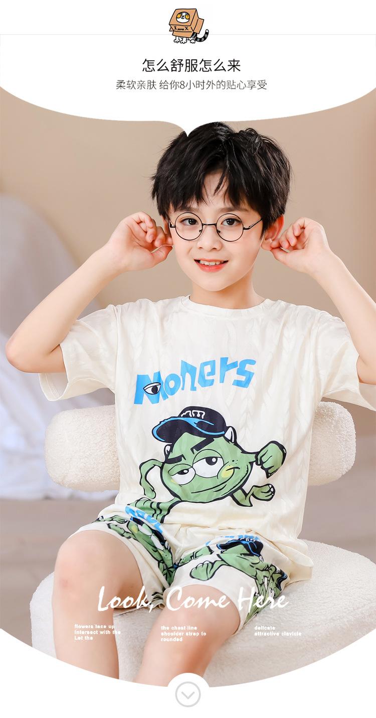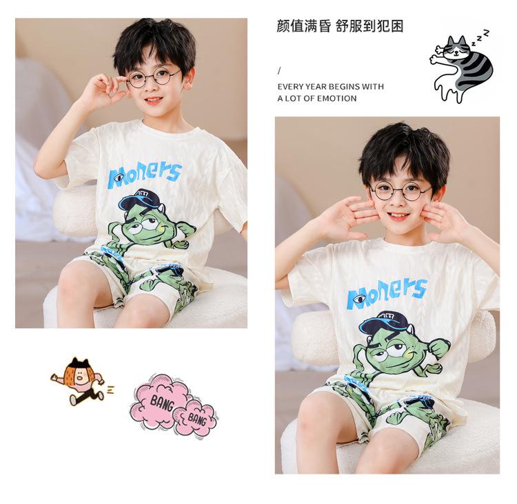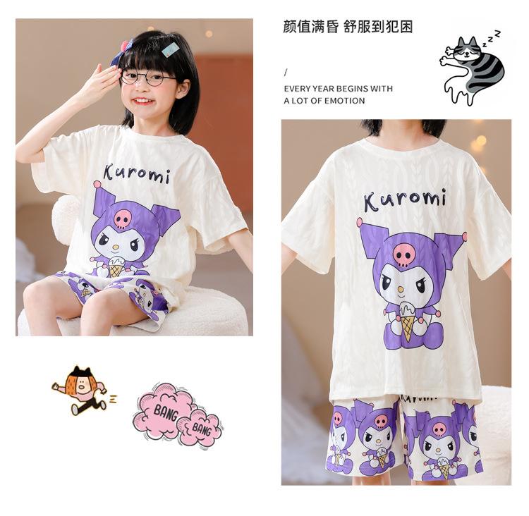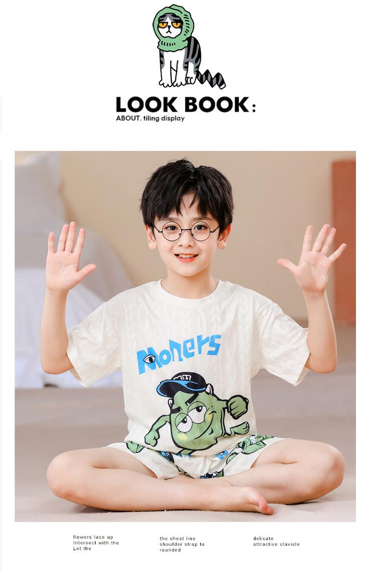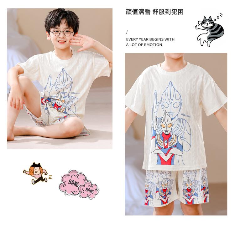 Pijamas de verano 2023 para niños y niñas, de manga corta, de algodón peinado jacquard, con dibujos animados, para el hogar