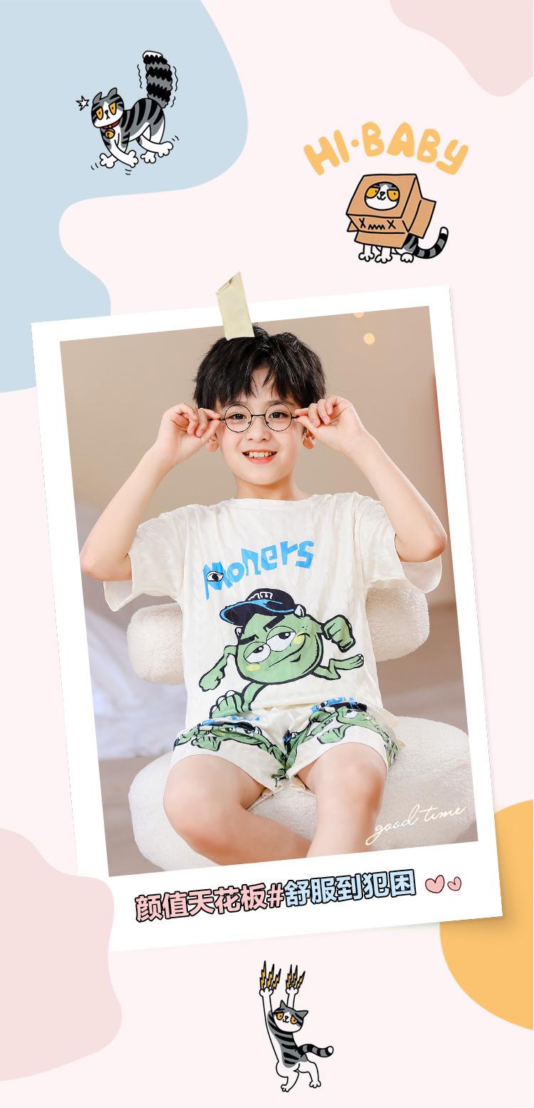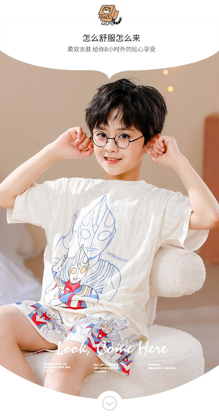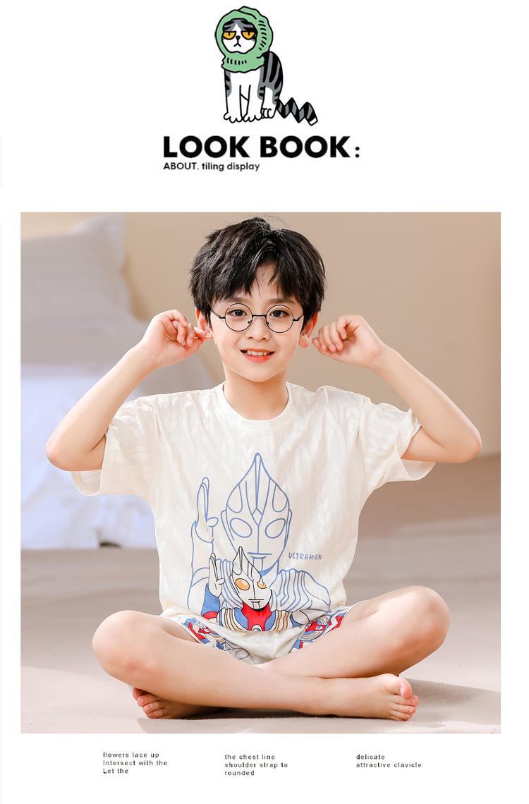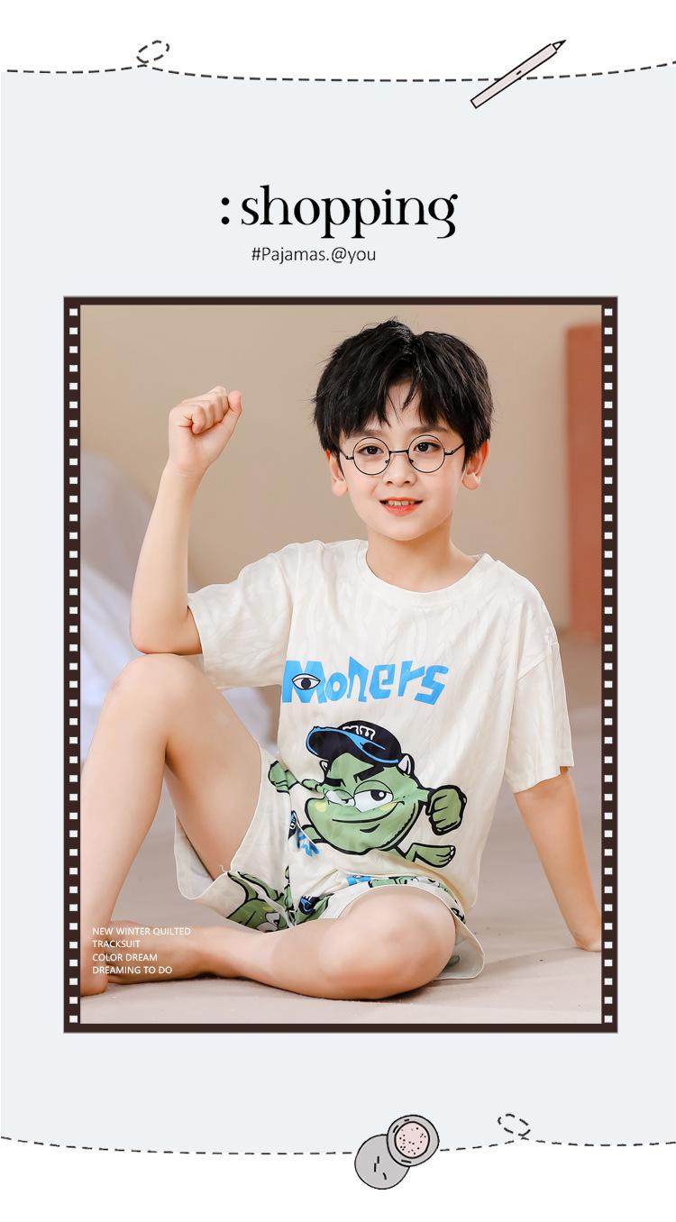 Pijamas de verano 2023 para niños y niñas, de manga corta, de algodón peinado jacquard, con dibujos animados, para el hogar