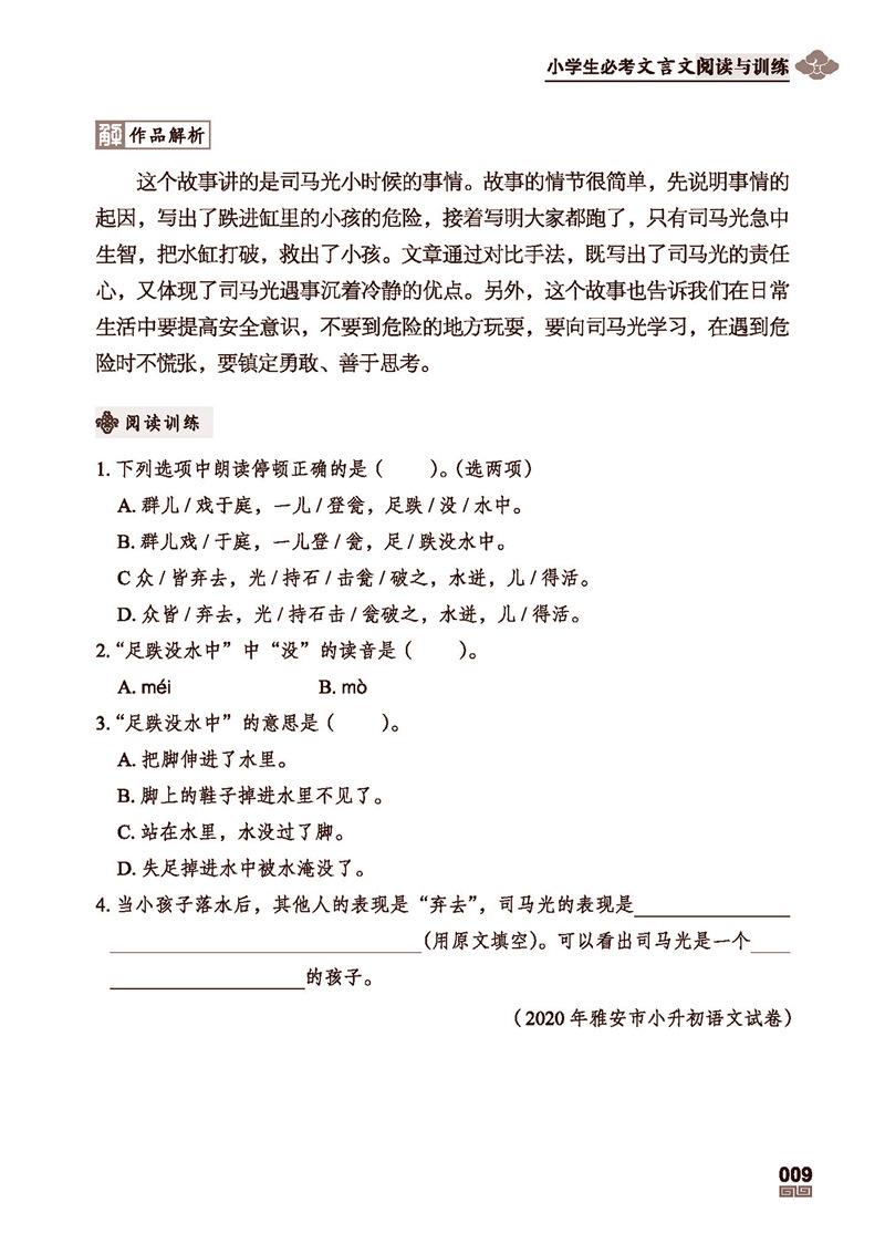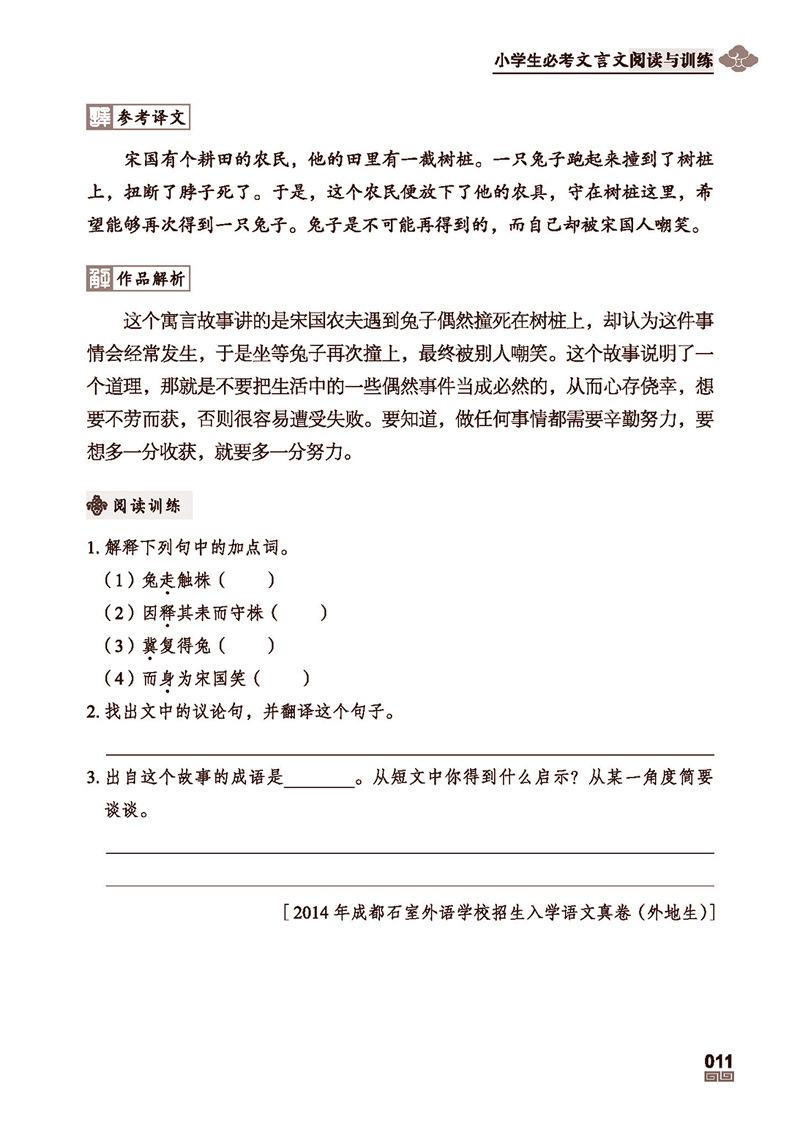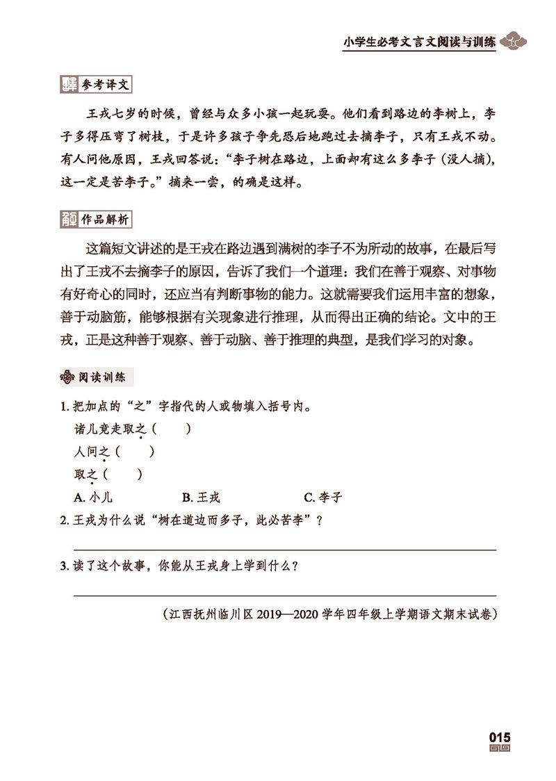 Los estudiantes de primaria deben examinarse Lectura y entrenamiento de chino clásico Lectura y entrenamiento de apuntes de un libro Práctica de apreciación de la traducción