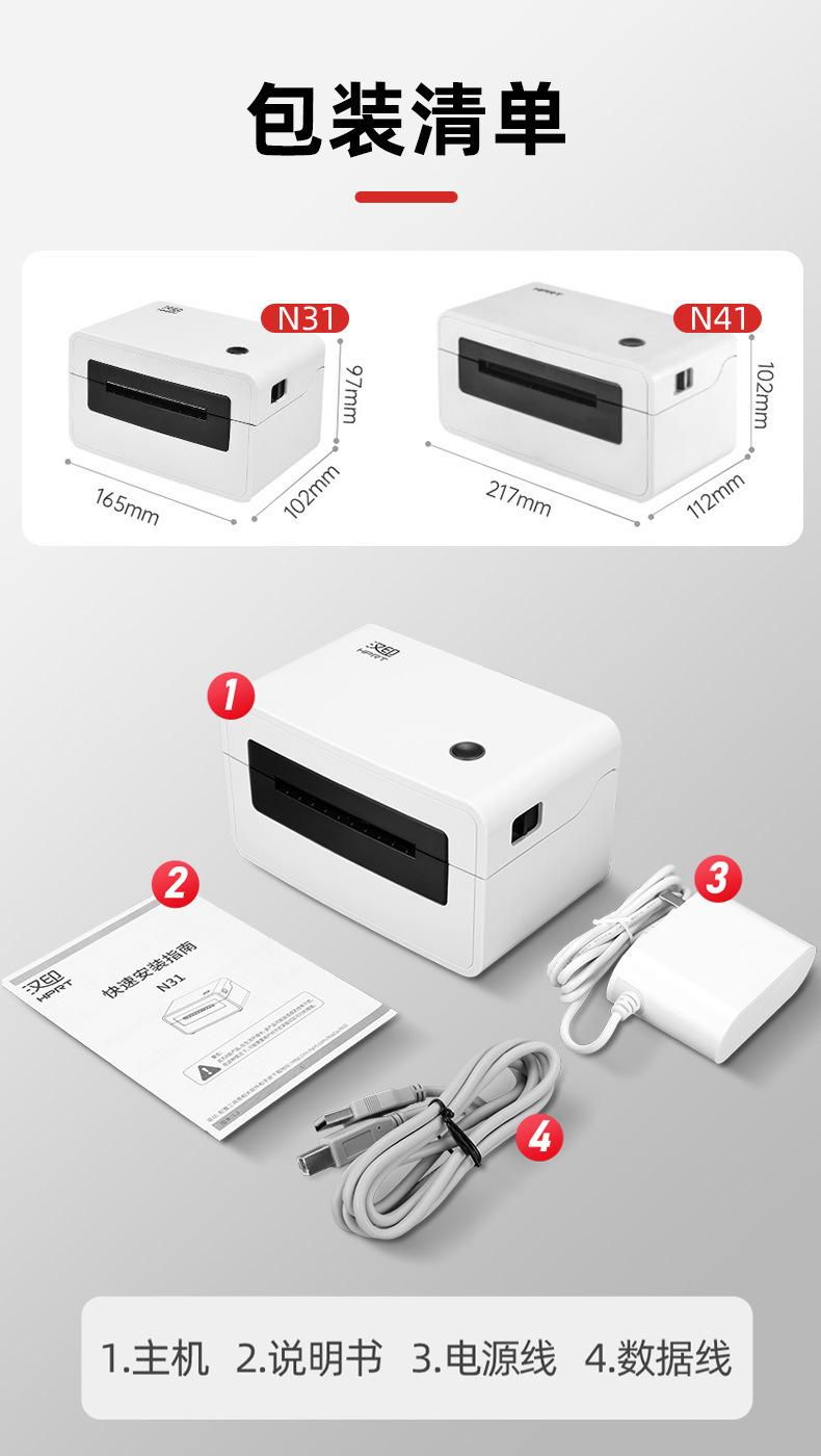 Hanyin N31/N41 Impresora Express Máquina de Pedidos Transfronterizos Etiqueta Impresora de Papel Térmico Pedidos Rápido Universal
