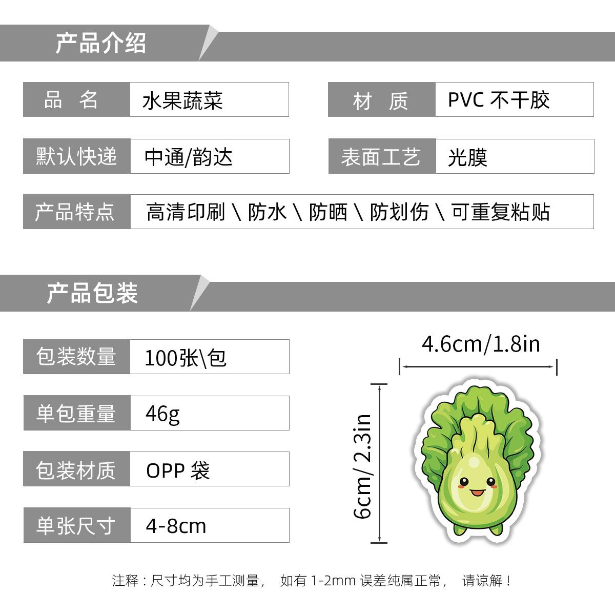 Transfronterizo 100 pegatinas de grafiti de frutas y verduras de dibujos animados, taza de agua, equipaje, pegatinas decorativas impermeables, pegatinas creativas