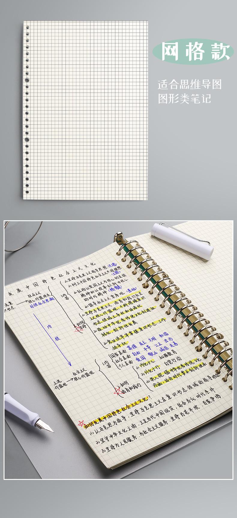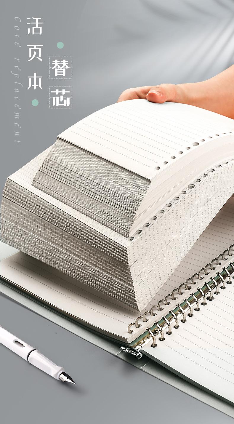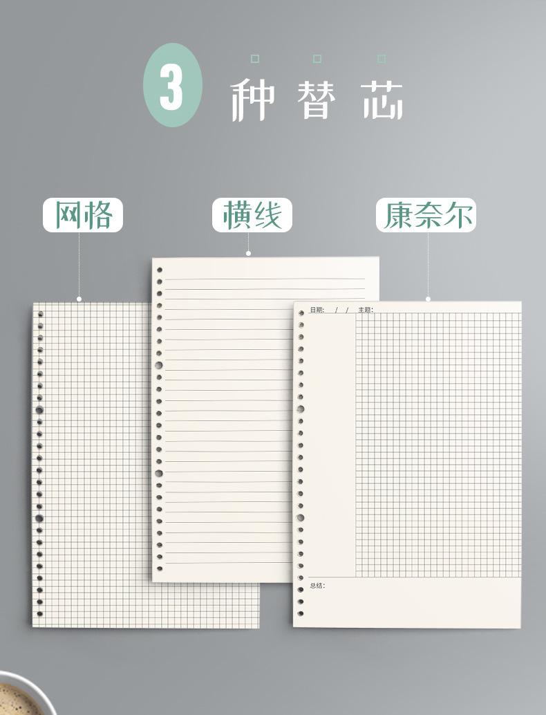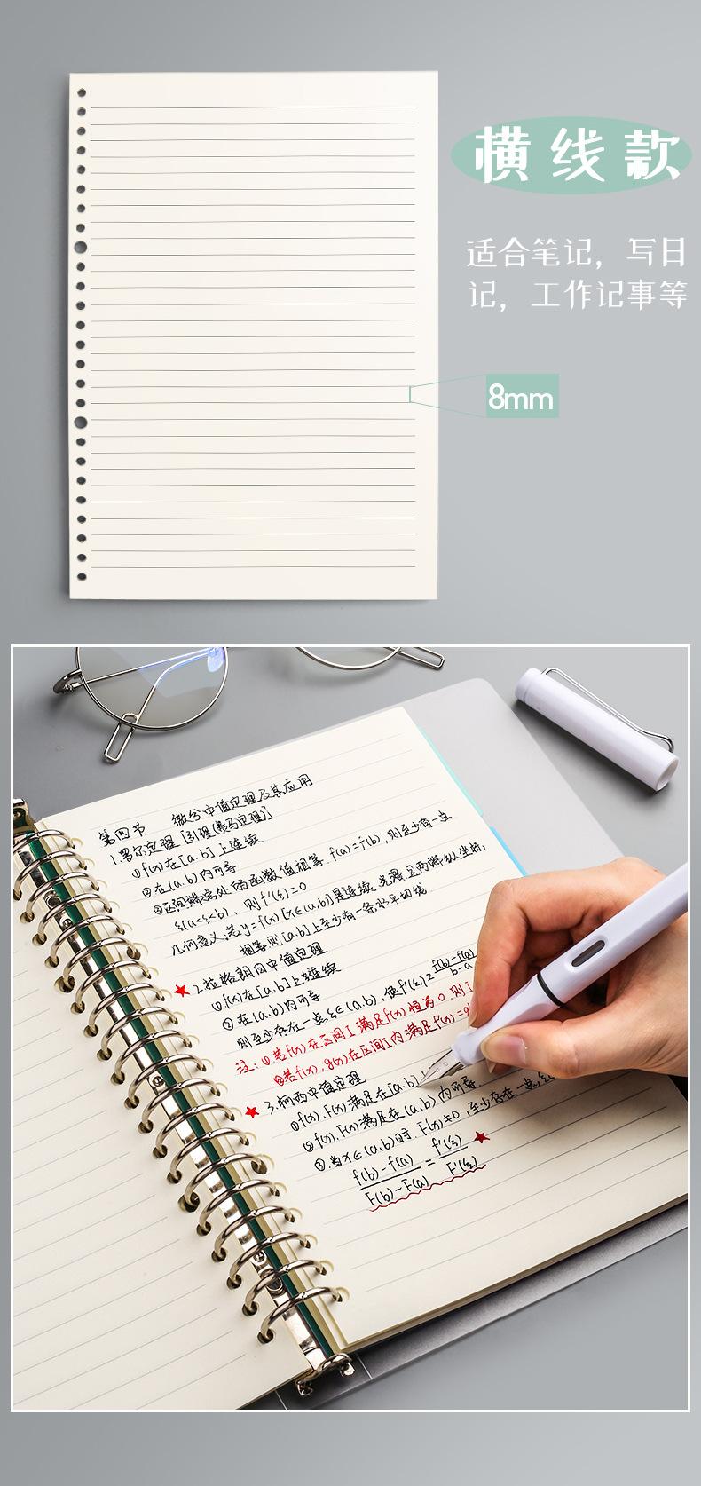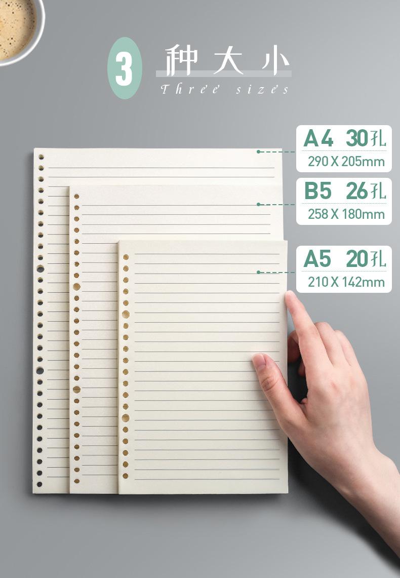 Núcleo de repuesto para papel de hojas sueltas B5, cuadrícula A4, cuadrícula de líneas horizontales, subcuadrícula para cuaderno de 26 orificios, anillo de clip Cornell A5 que se puede