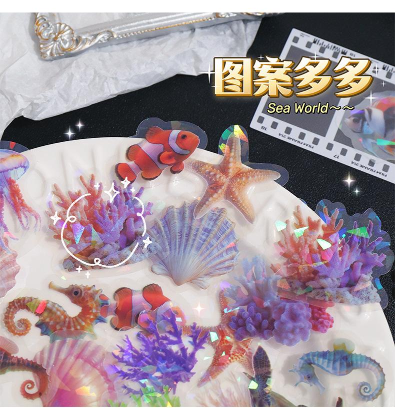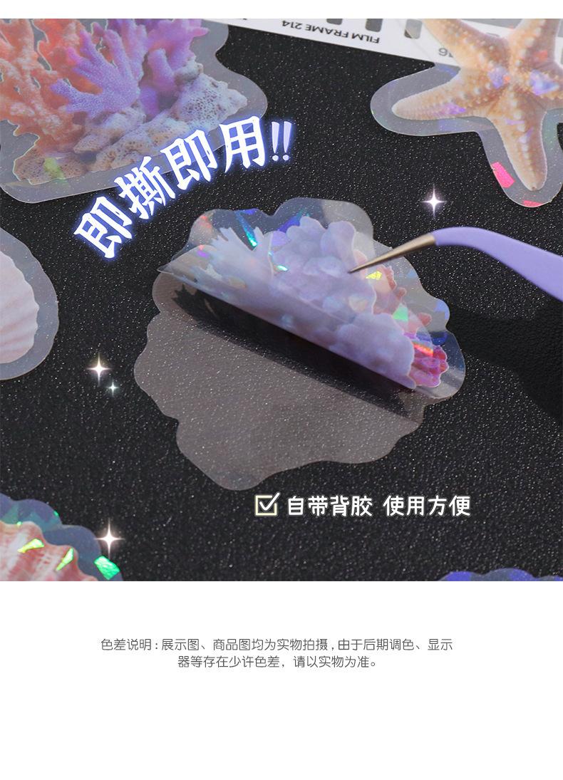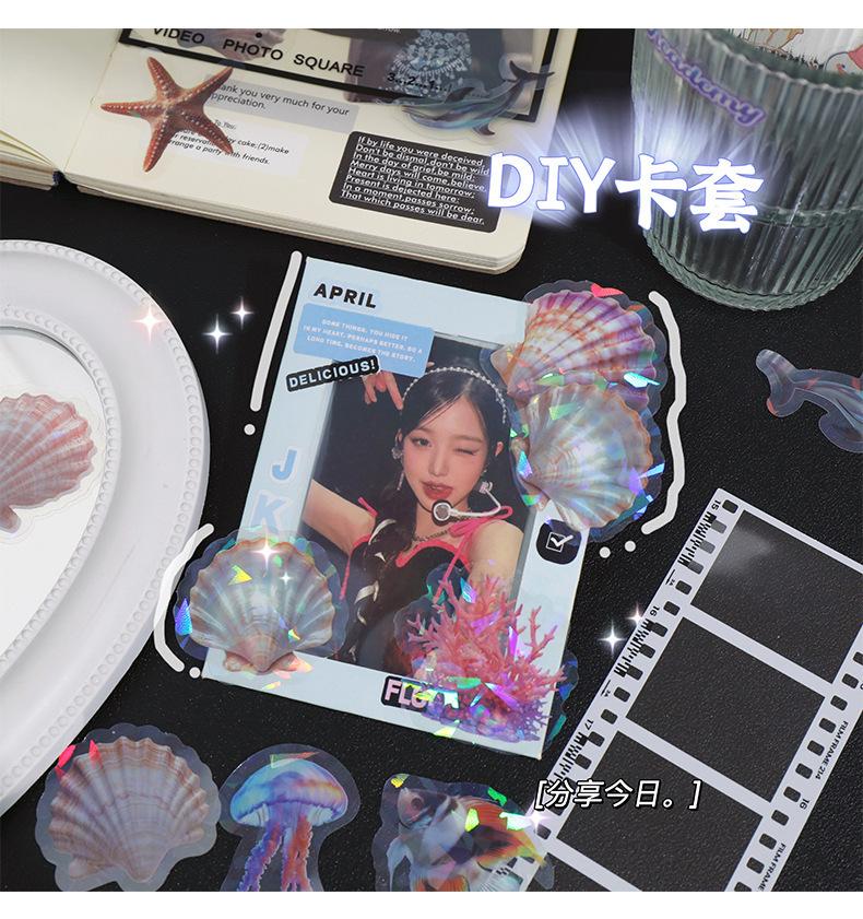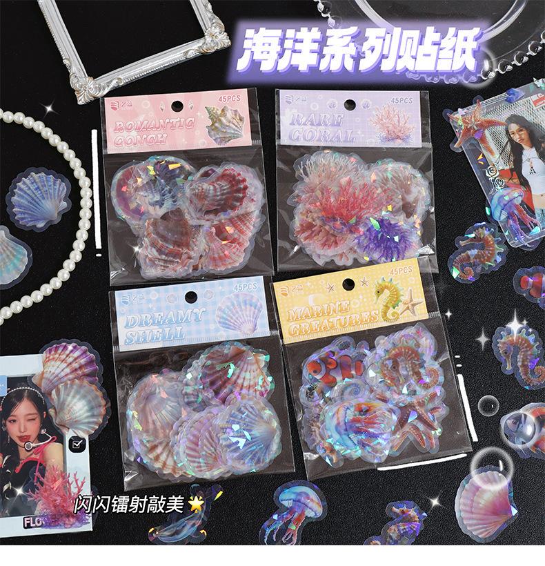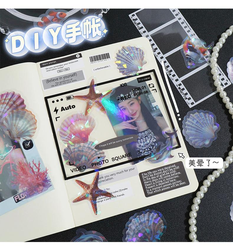 Nueva Bolsa de Stickers PET Serie Océano Creativas Pegatinas Láser Pegatinas Shell Viento Ins DIY Cuenta de Mano Pegatinas Goo