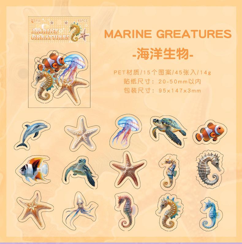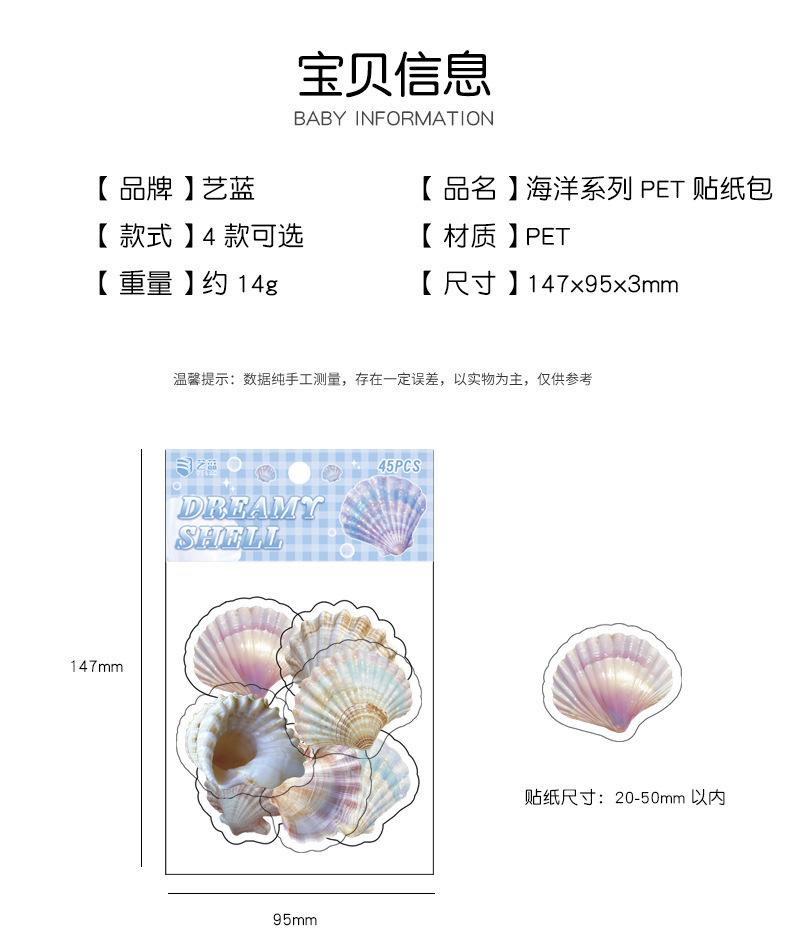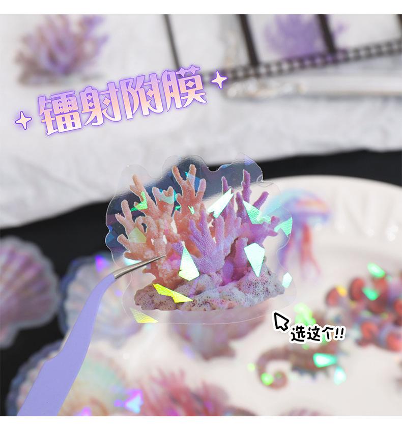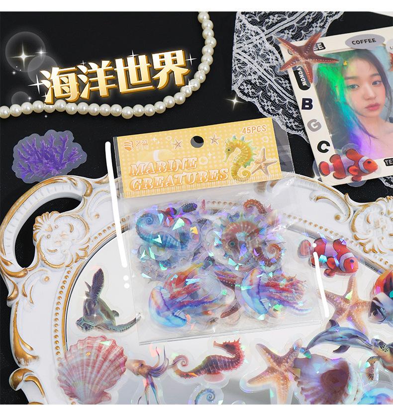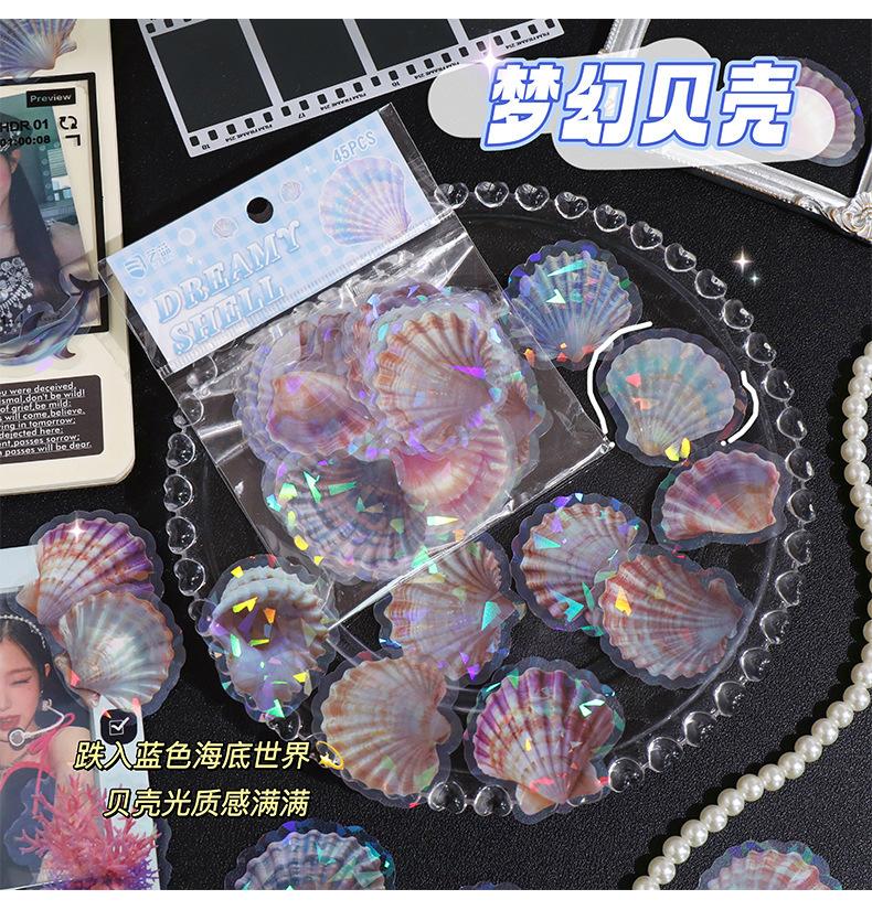 Nueva Bolsa de Stickers PET Serie Océano Creativas Pegatinas Láser Pegatinas Shell Viento Ins DIY Cuenta de Mano Pegatinas Goo