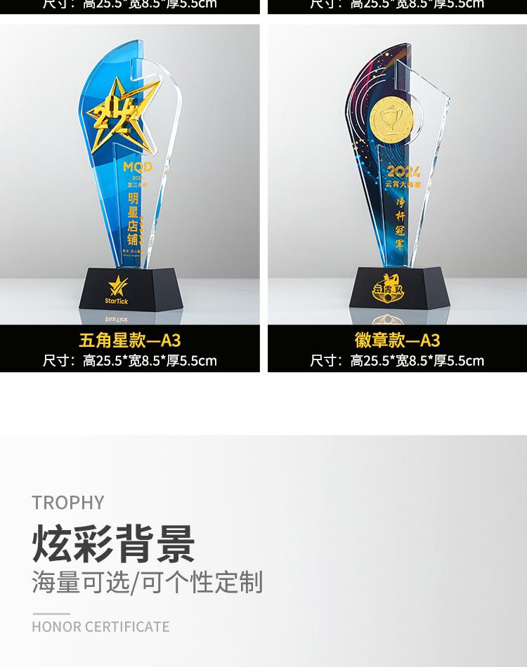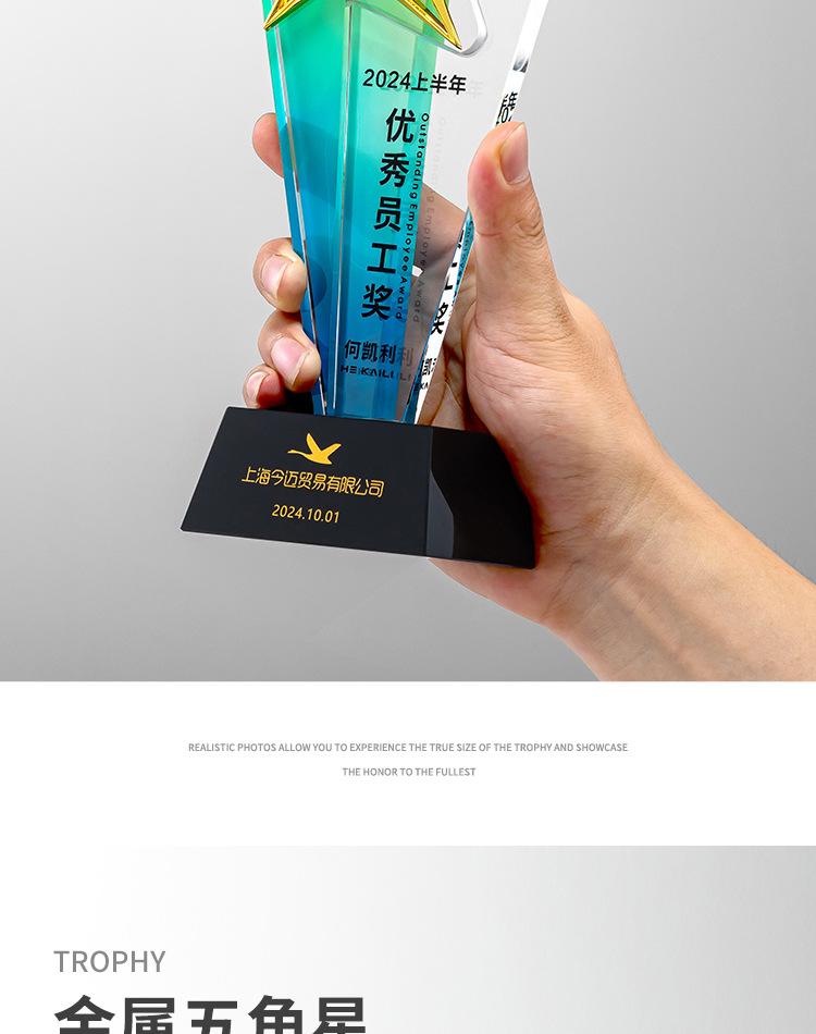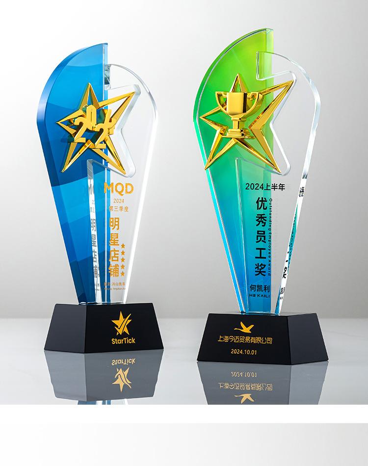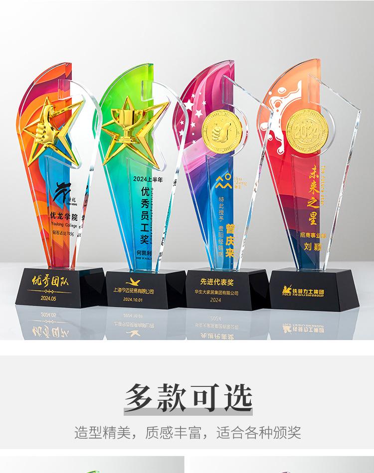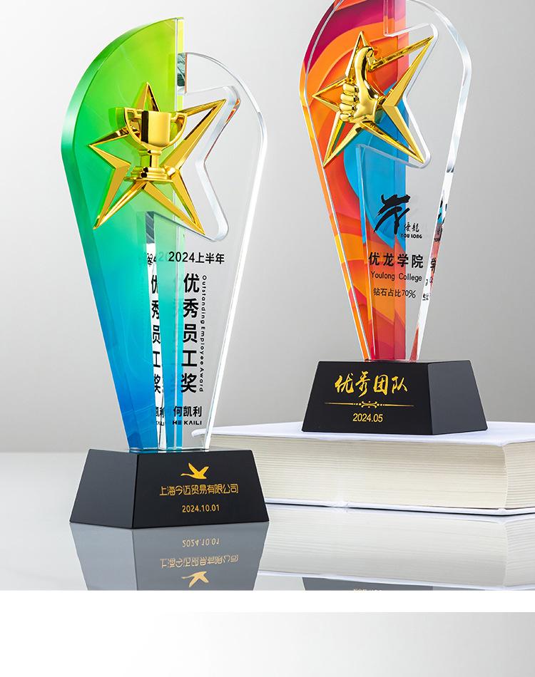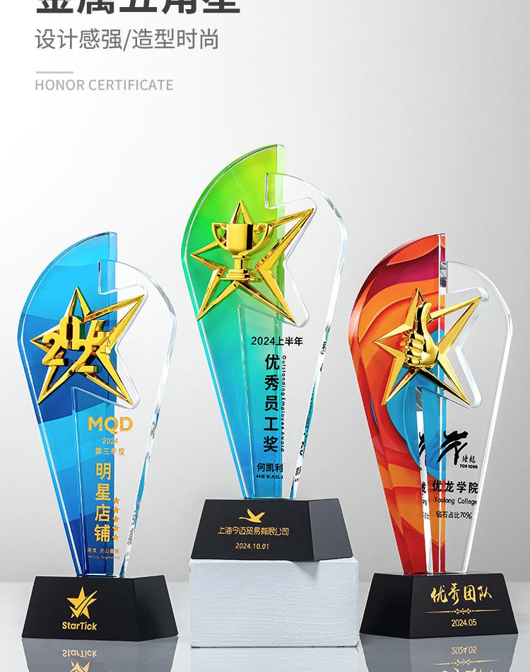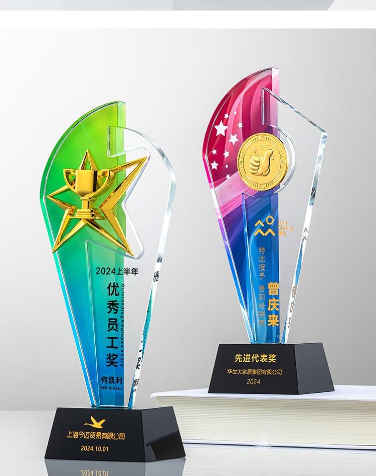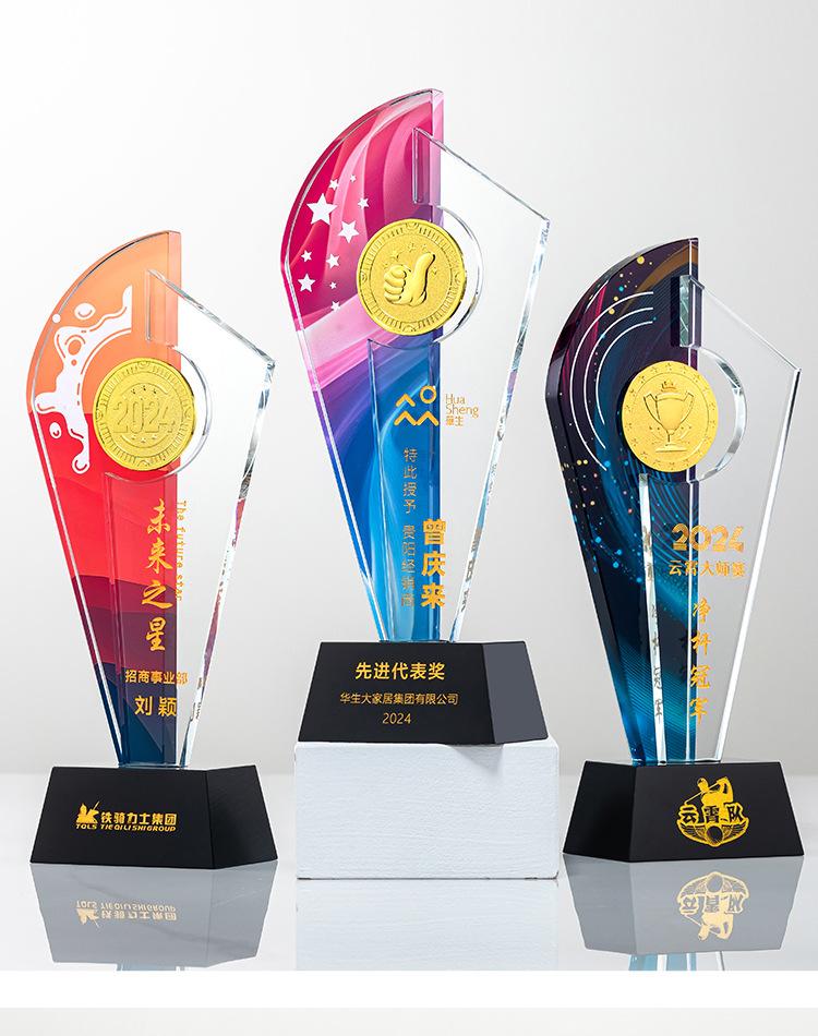 Nueva empresa creativa de personalización de trofeos de cristal de alta calidad, premio para la reunión anual, medalla para miembros destacados del personal.