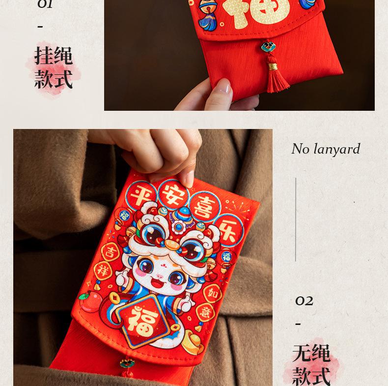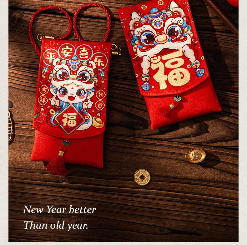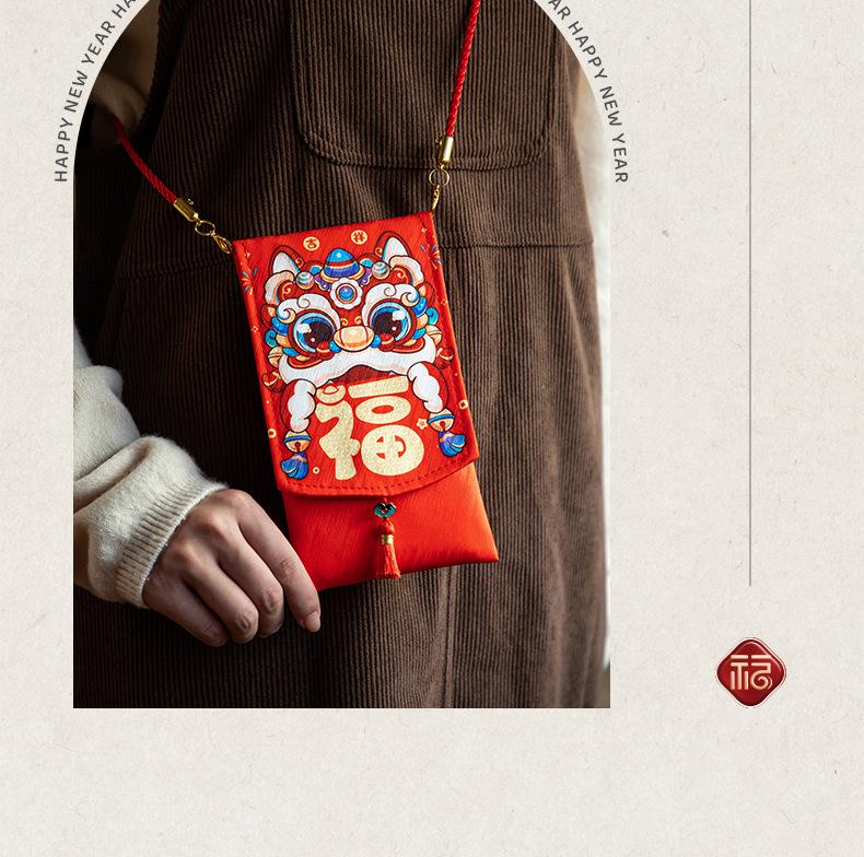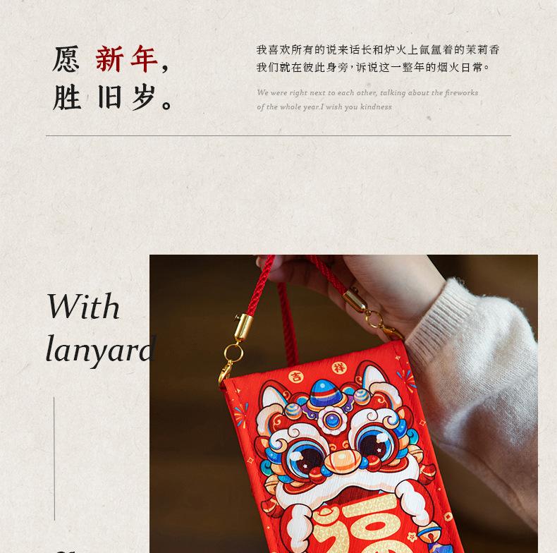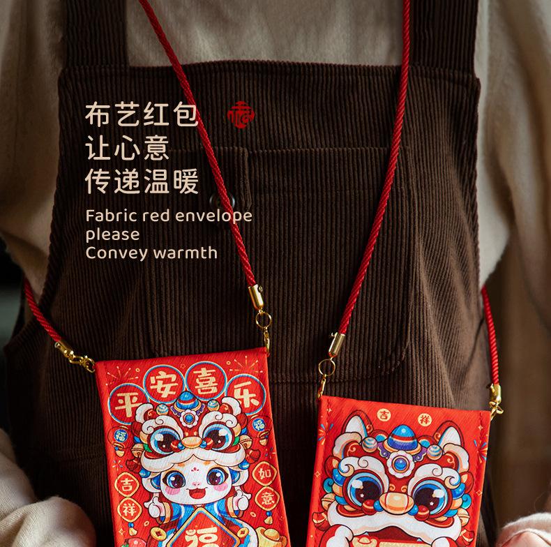【fabric red envelope】lion dance blessing, 【fabric red envelope】guaranteed fortune, [with lanyard] lion awakeni...