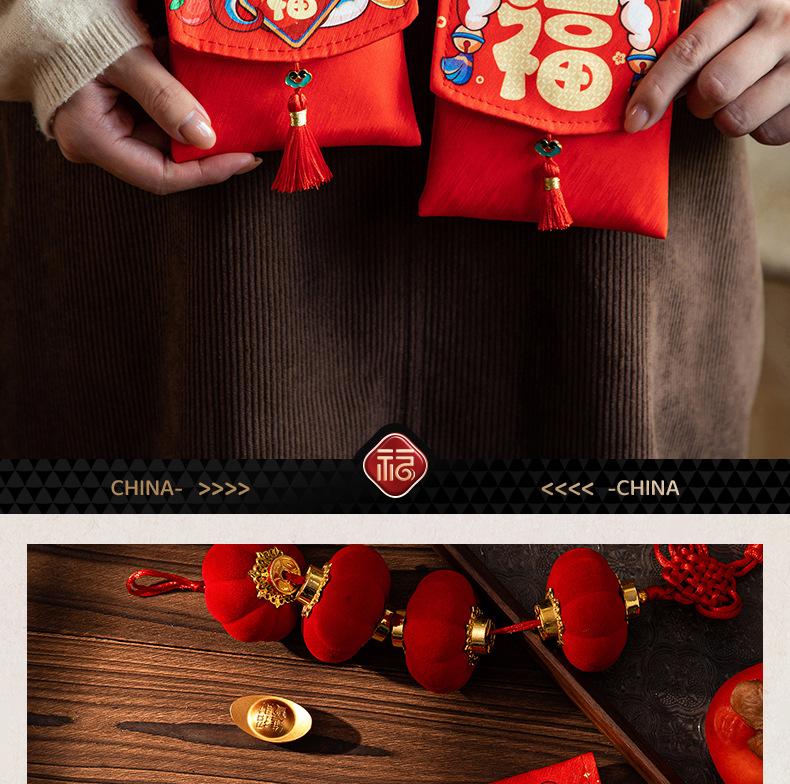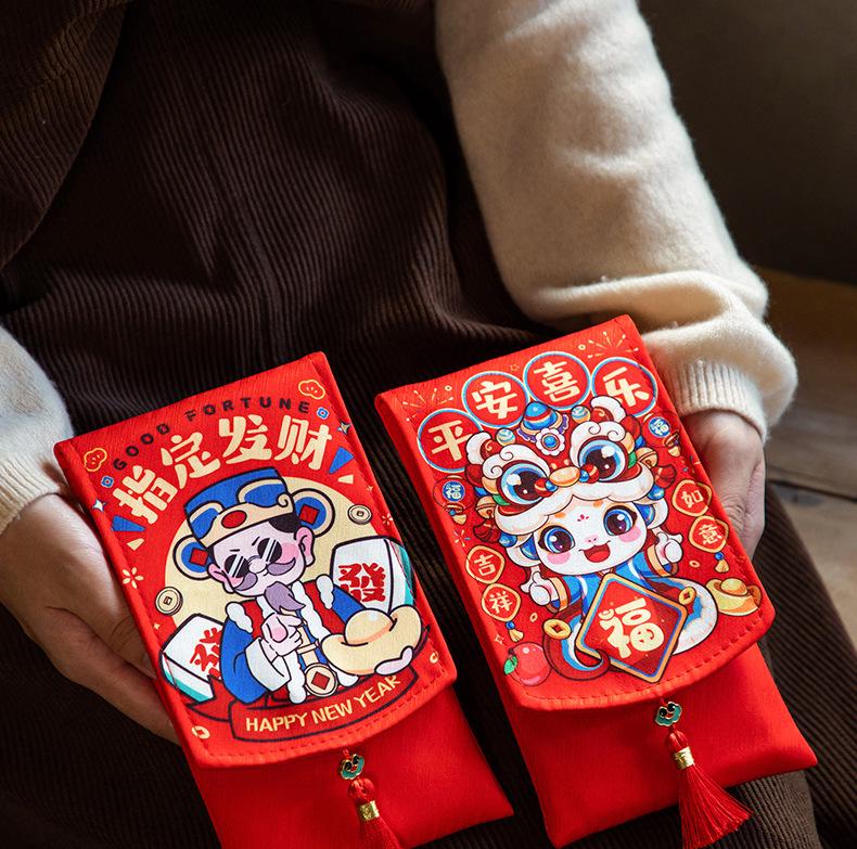 Sobres Rojos de Tela Personalizados con Dibujos Animados Creativos de Estilo Chino para el Festival de Primavera, Lindas Bolsas para el Dinero de la Suerte estilo Correa, Paquetes Rojos de Año Nuevo