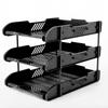 Bandeja de archivos de tres capas, archivador de plástico, cesta de archivos de tres capas, estante de datos para almacenamiento y acabado de escritorio, revistero de varias capas