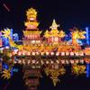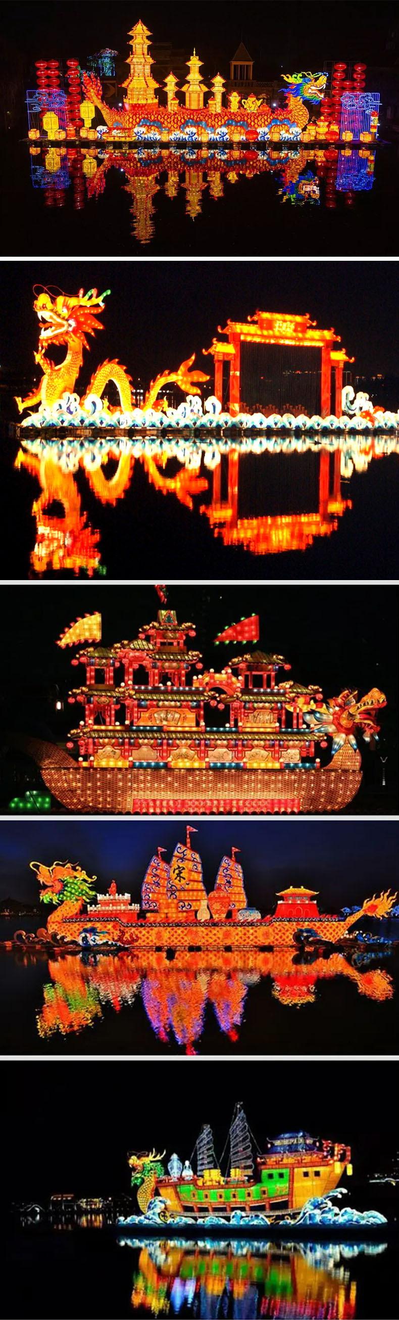 Nueva linterna luminosa de estilo chino con forma de barco de dragón, lámpara grande con paisaje urbano nocturno, decoración para festivales, nueva linterna luminosa de estilo chino con forma de barco de dragón.