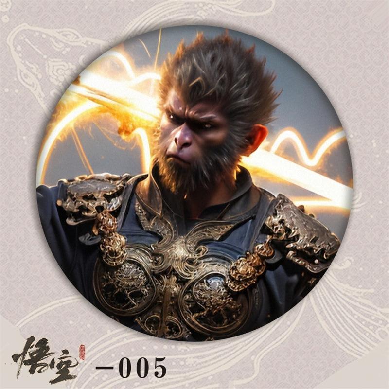 Insignia de Wukong negra Insignia brillante Cabeza Hojalata Comercio exterior Regalo Joyería Animación Segunda dimensión Mijo brillante