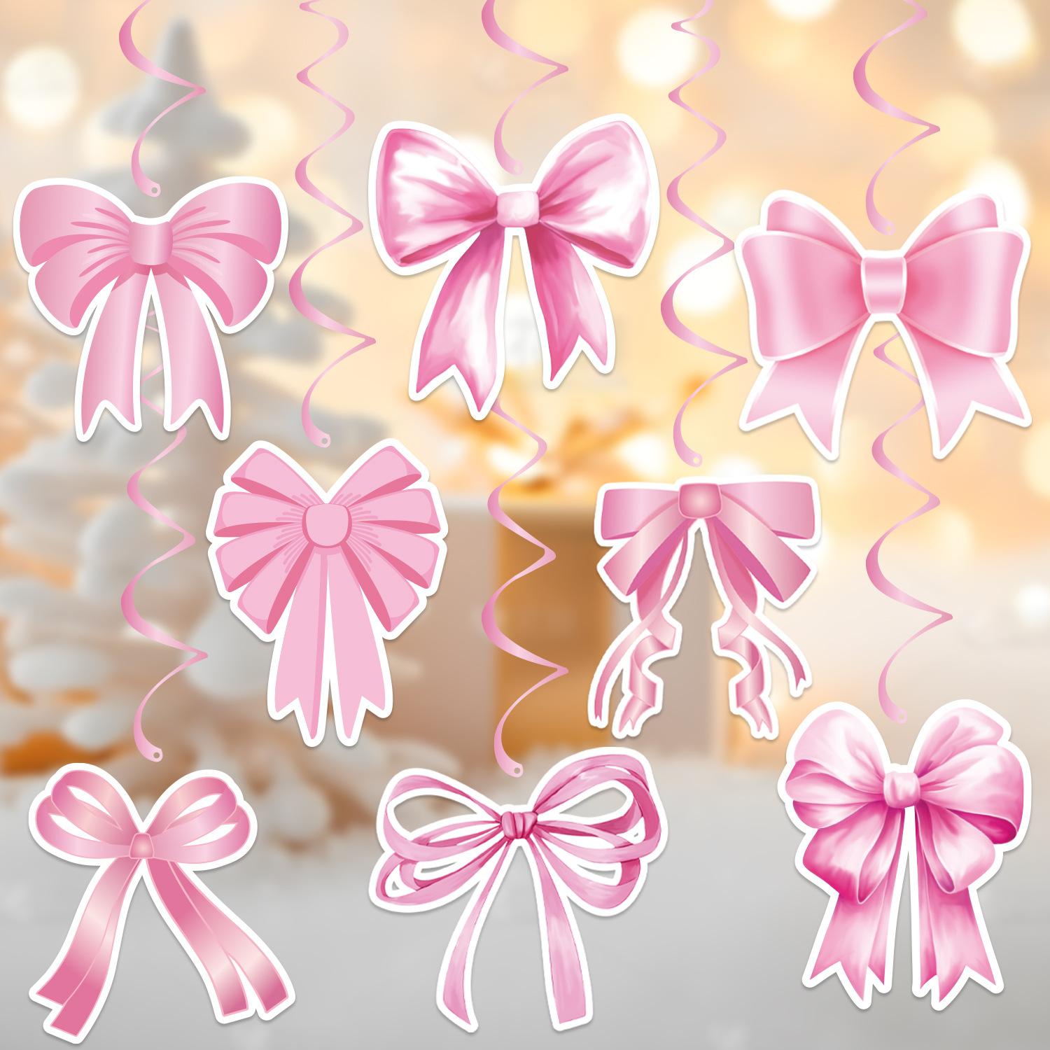 Candelabro espiral decorativo para fiesta de cumpleaños de niña nueva, lazo rosa, decoraciones colgantes en espiral para cumpleaños