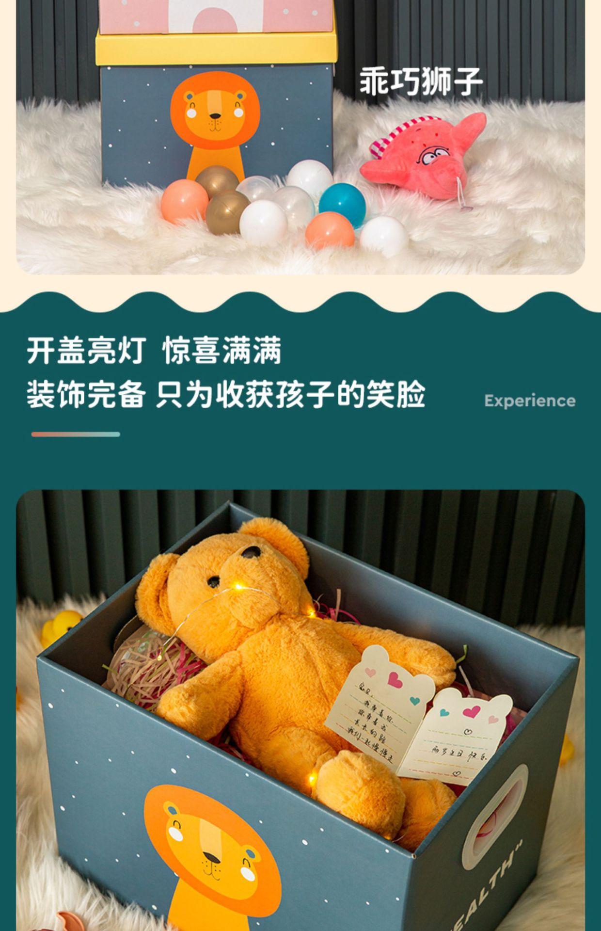 Cat gift box + raffia + ambient light + greeting card-35*26*26.5, Lion gift box + raffia + ambient light + gre...
