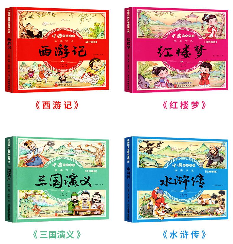 Cuatro grandes libros Cómic Versión bopofónica infantil Viaje a la orilla del agua del oeste Libro ilustrado Romance de los tres reinos Un sueño en las mansiones rojas Estudiantes de primaria