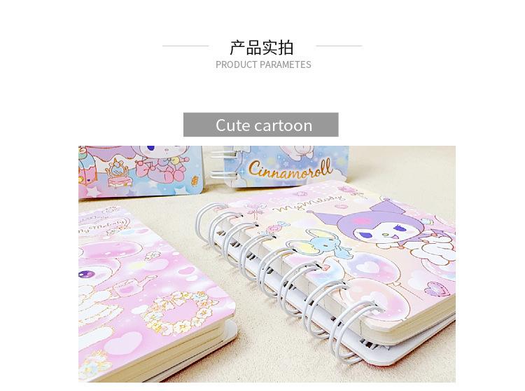 Cuaderno de espiral con dibujos animados A7100K para estudiantes de primaria, cuaderno de cuentas manual Sanrio, minicuaderno de bolsillo bonito