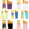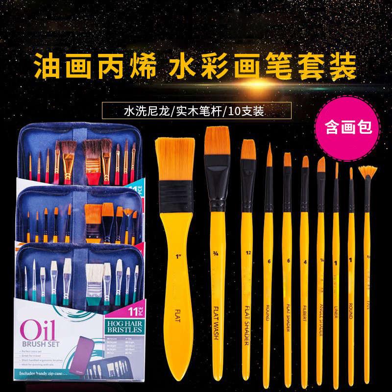 10 acrylic brushes, 10 watercolor brushes, 10 oil paint brushes, 10 gouache brushes