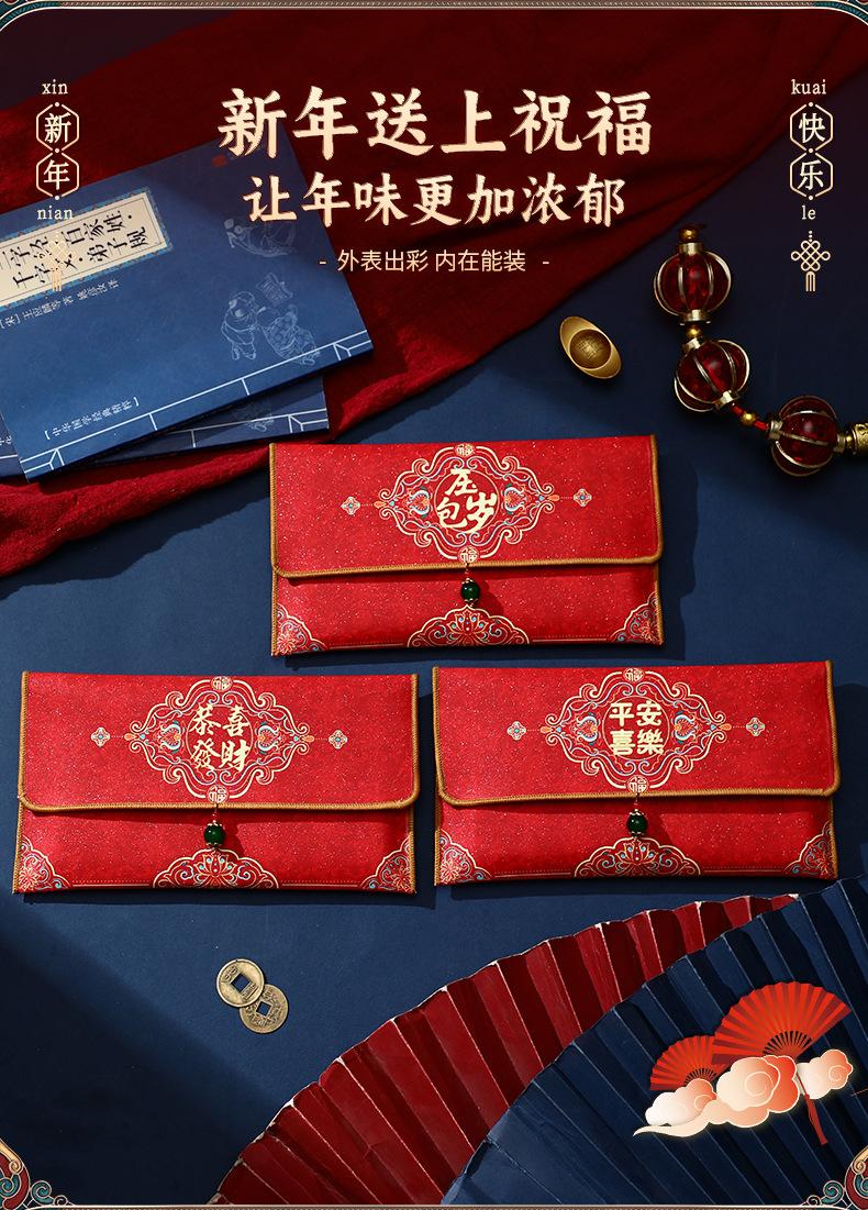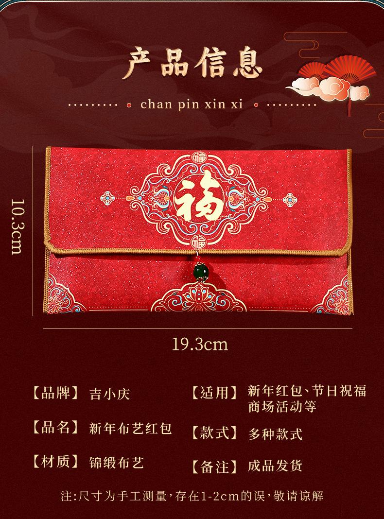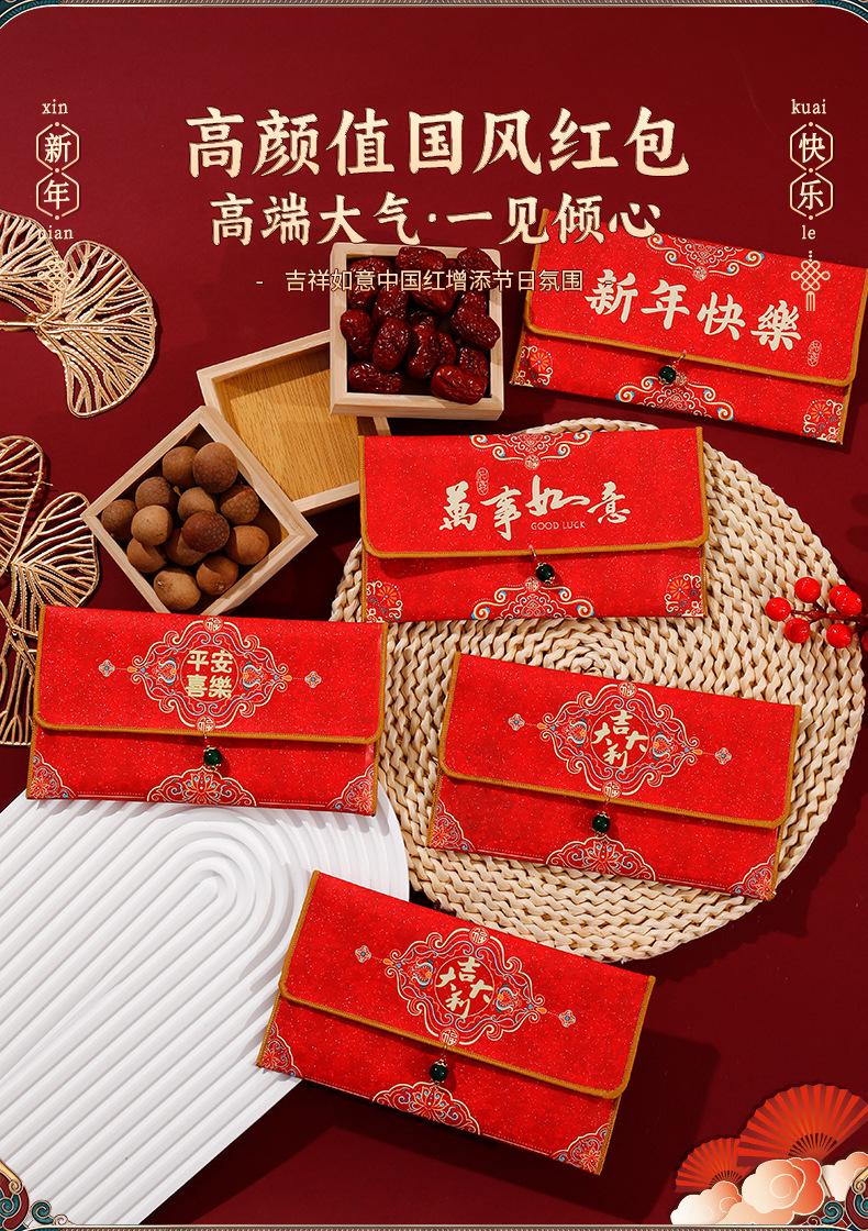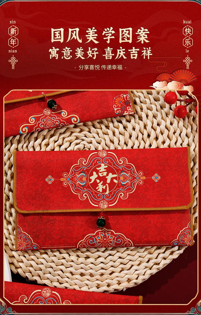 Bolsa de sobre rojo de alta calidad, sobre rojo de diez mil yuanes, sobre rojo de tela china, palabra de la fortuna de Año Nuevo, buena fortuna y bolsa de sobre rojo de buena fortuna al por mayor