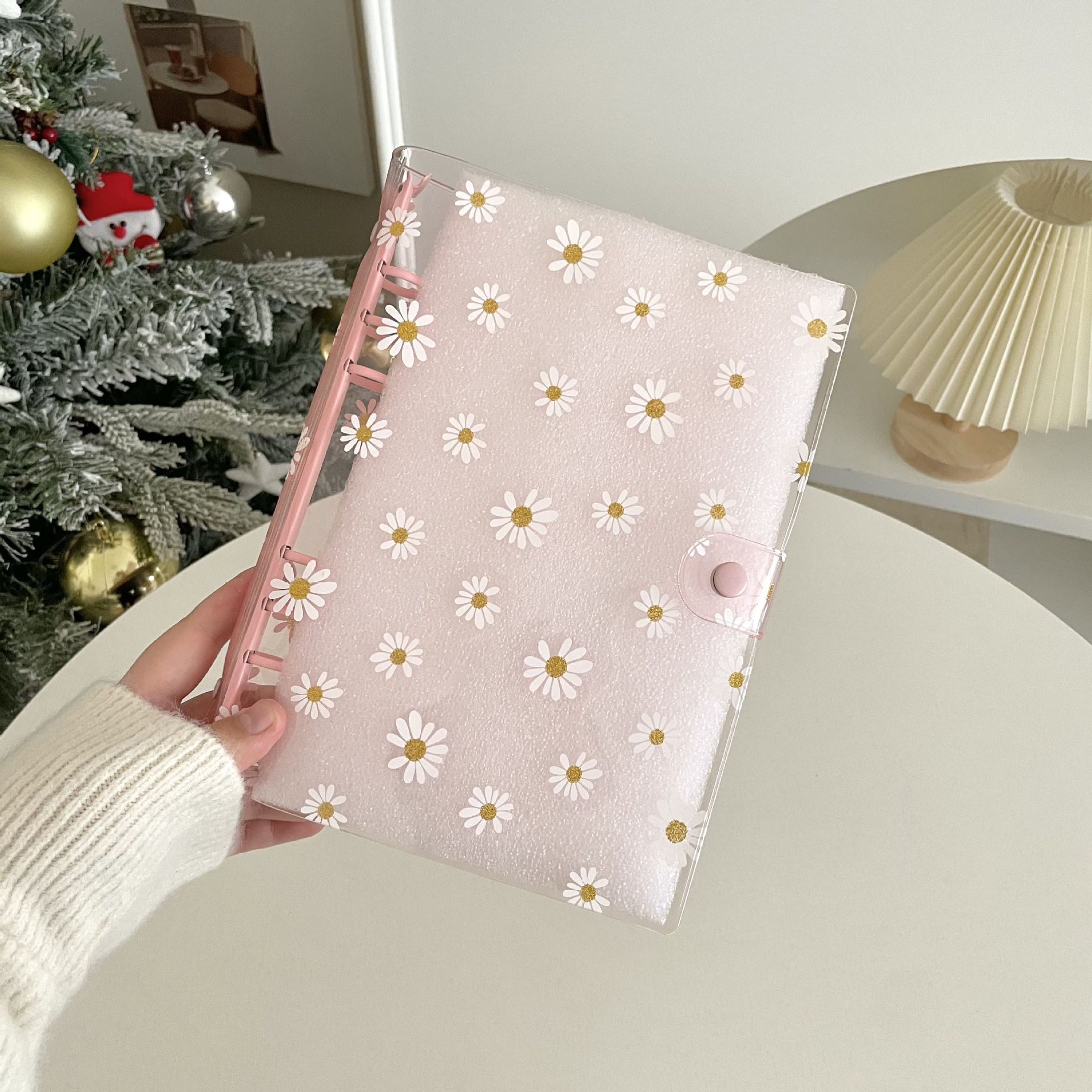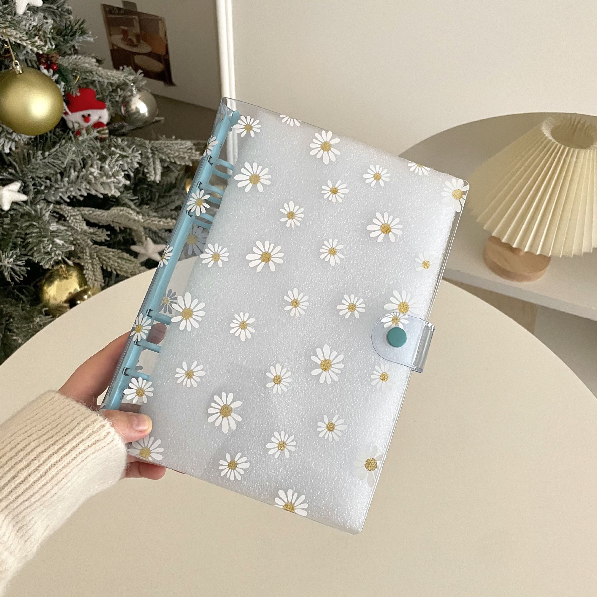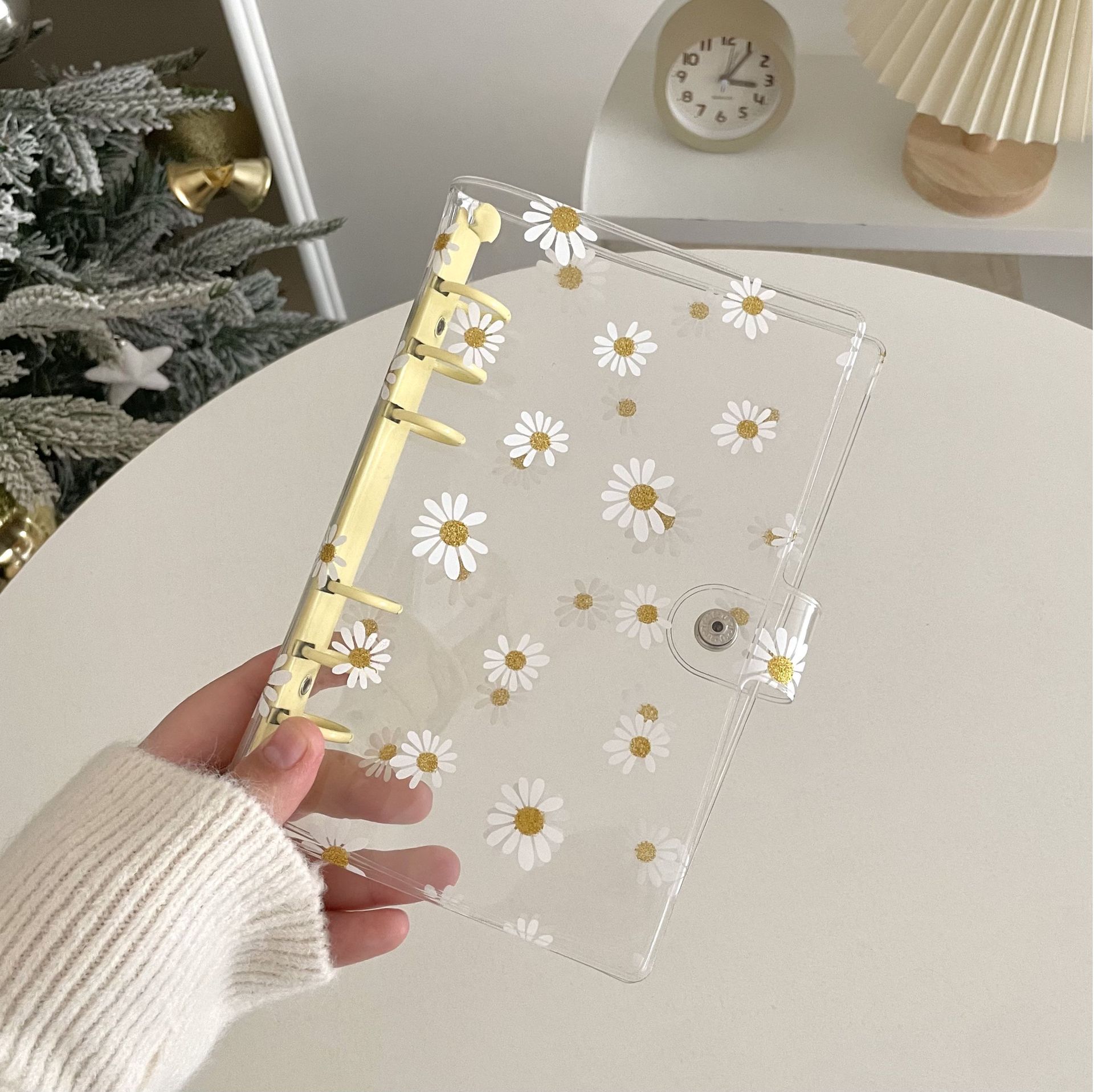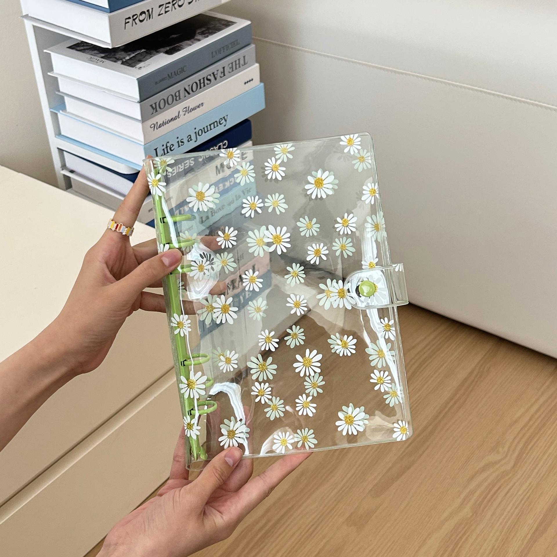 Papelería creativa de Corea del Sur, nuevo libro de hojas sueltas de PVC con 6 agujeros, color Daisy Macron, transparente, tamaño A5A6, libro de mano